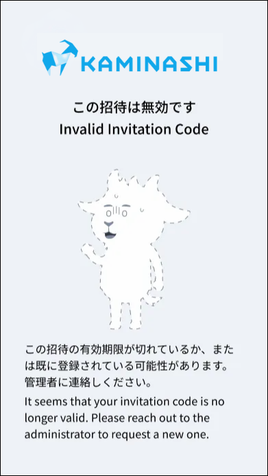 そのQRコード もしくは URLを連絡した企業担当者に「カミナシID管理にて再招待してください」と連絡してください。