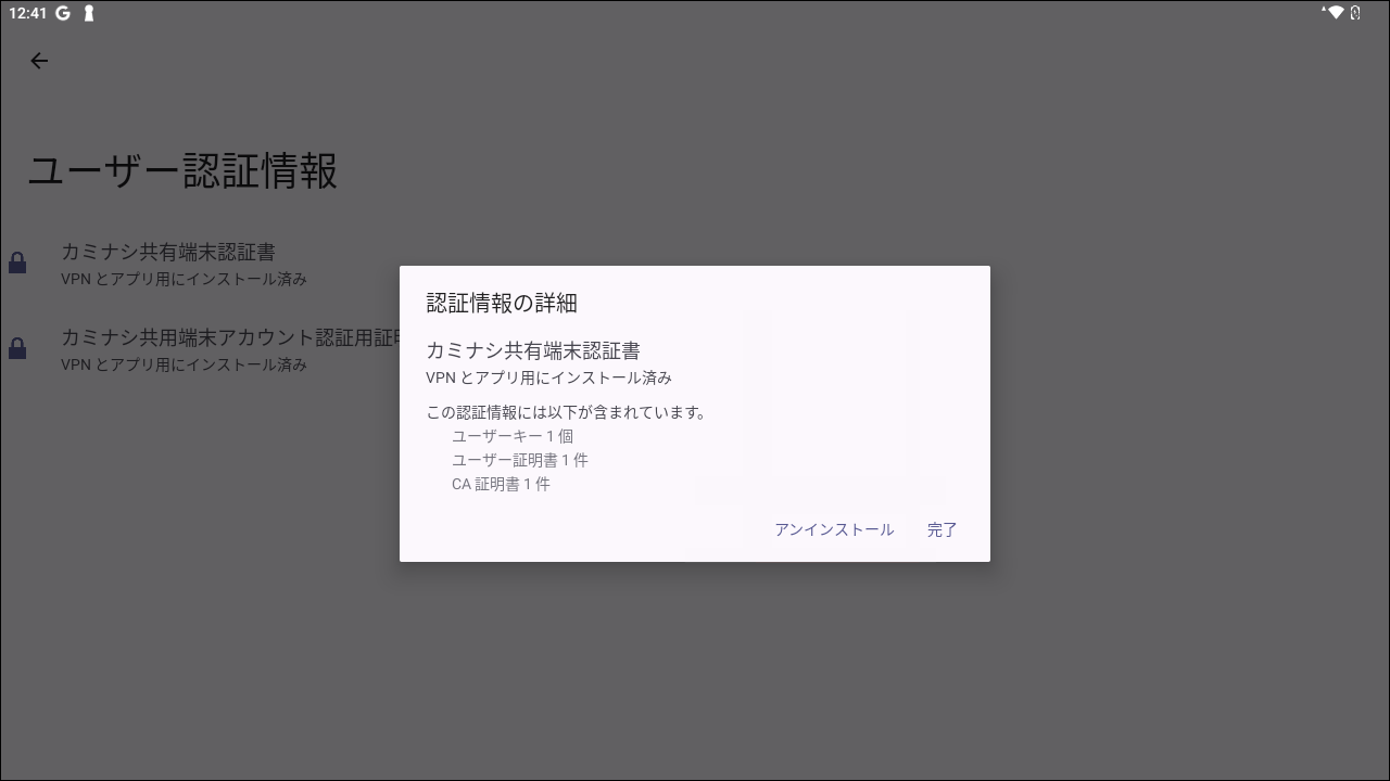 端末で証明書をインストールする必要があります。