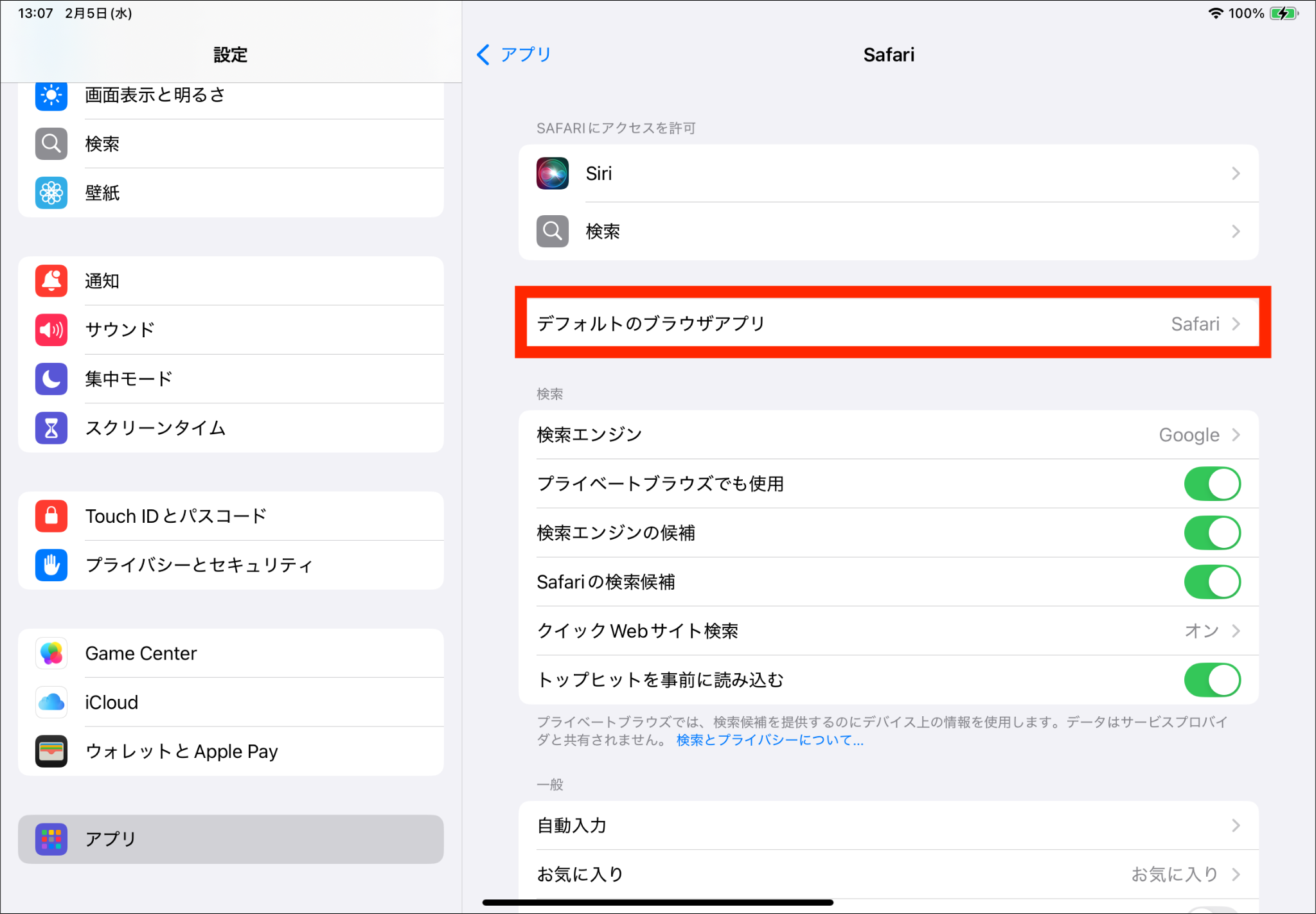 既にデフォルトのブラウザがSafariになっている場合は、設定不要です。