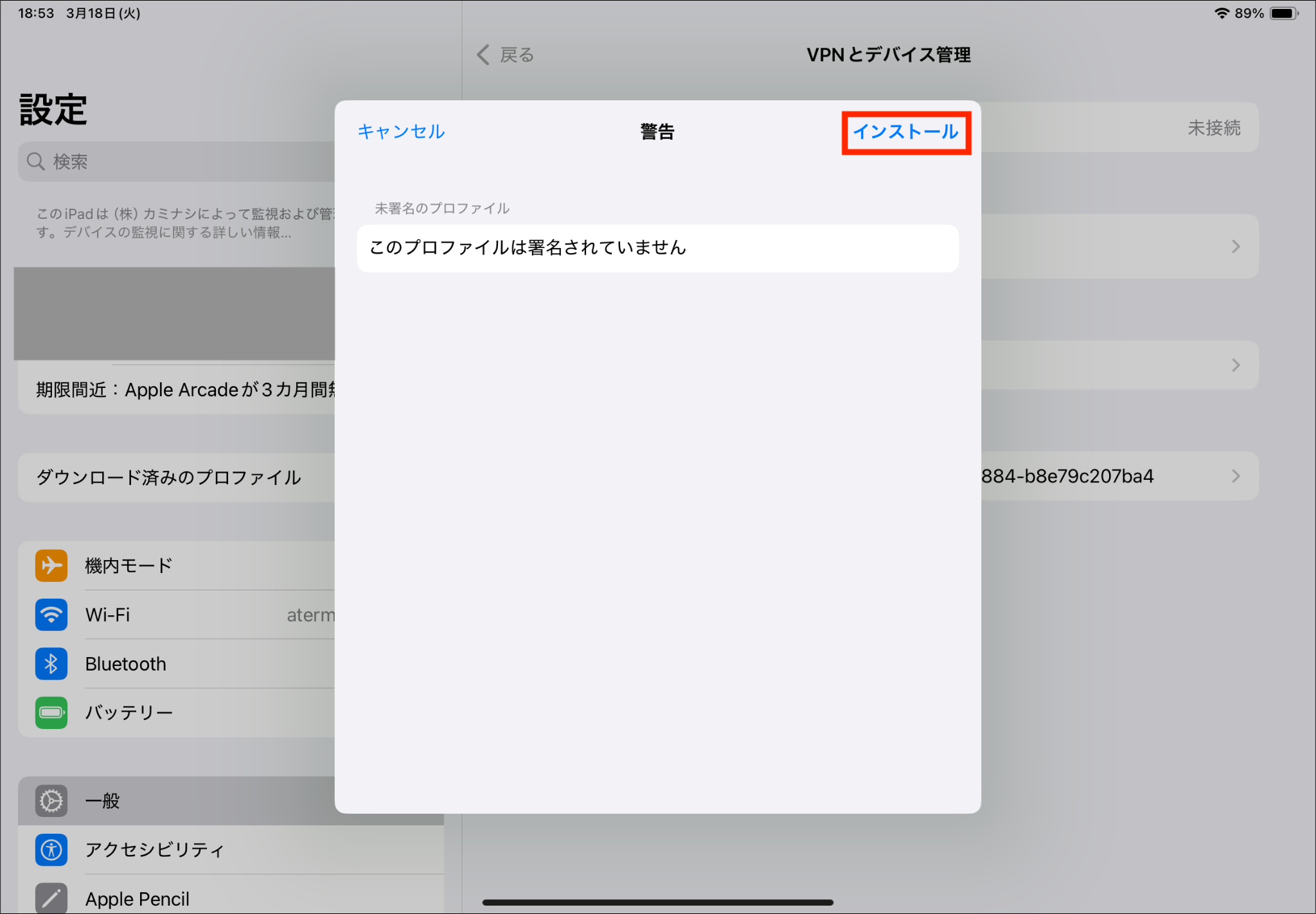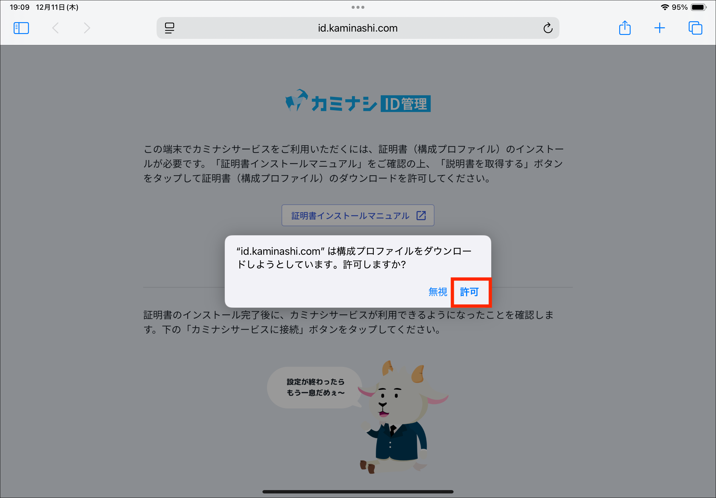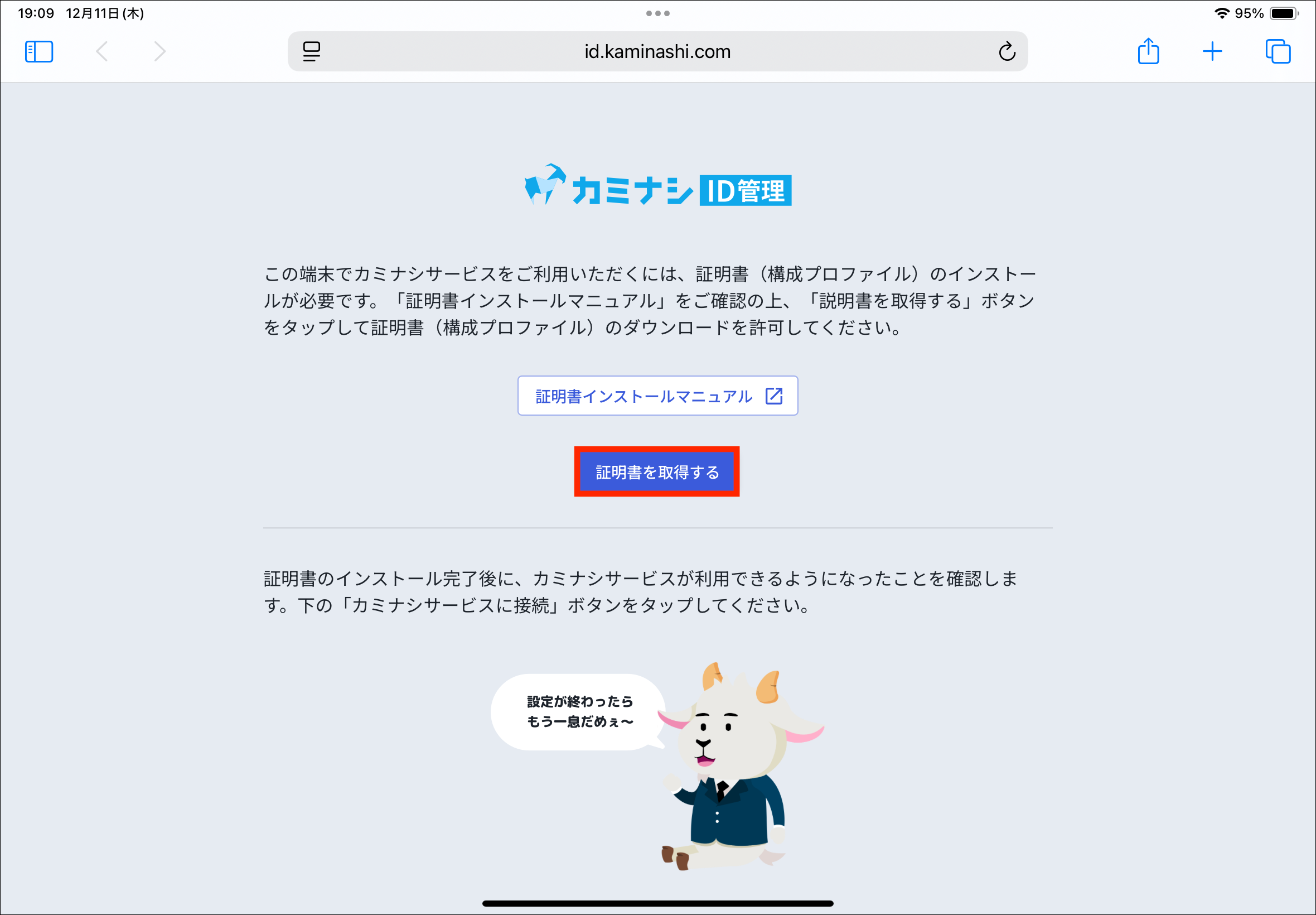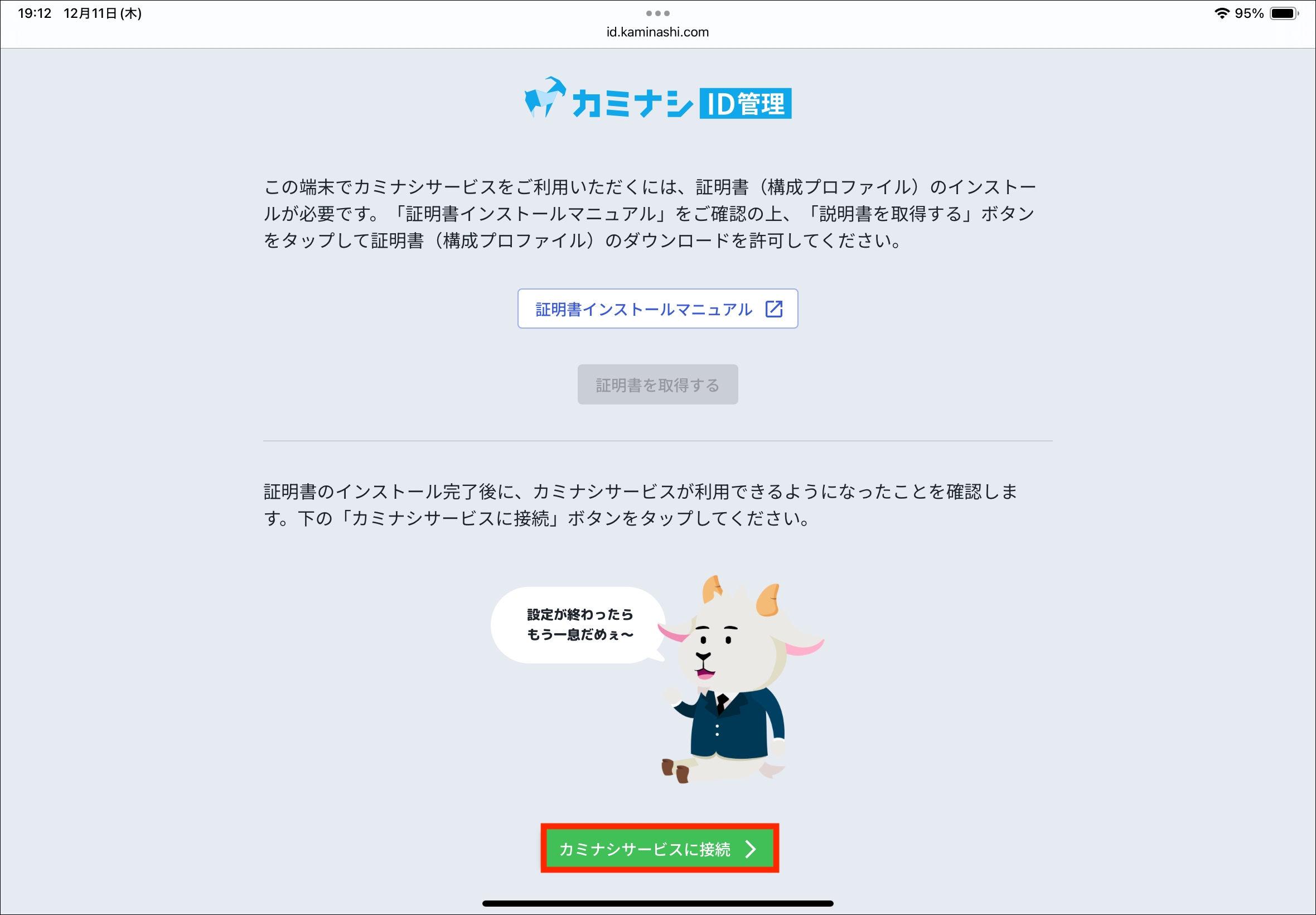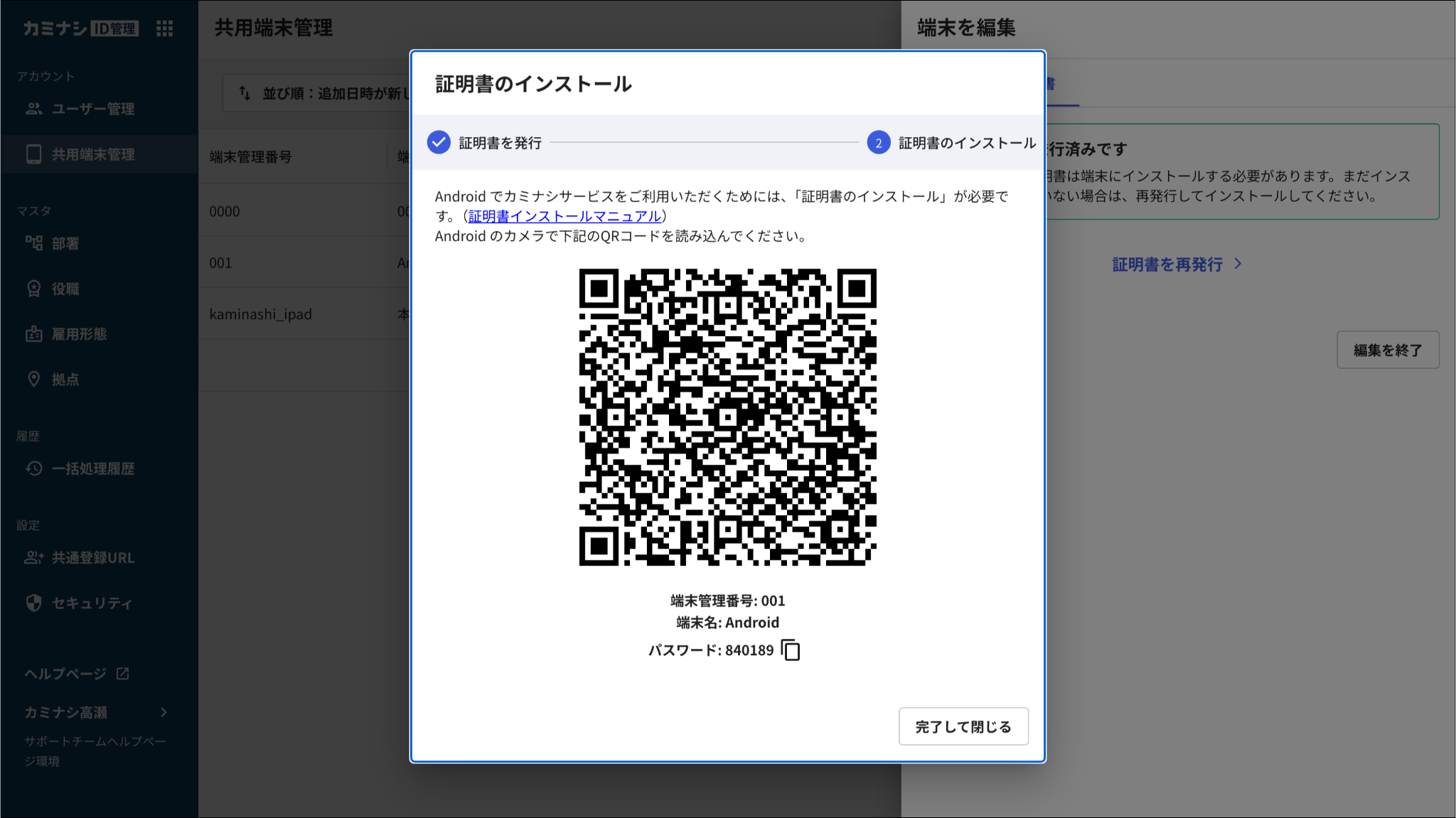 このとき、「共用端末を追加する:5.証明書のQRコードとパスワードを確認する」で発行したQRコードを読み取ります。