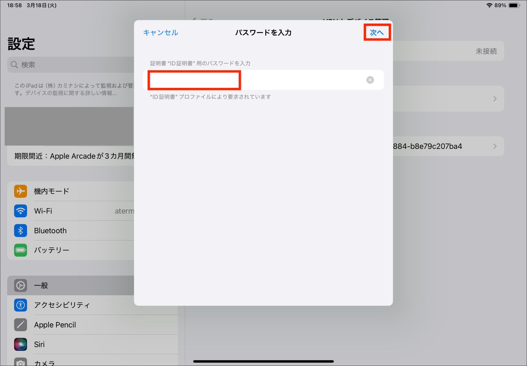 先ほどのQRコード画面の6桁の数字ではなく、iPadのロック解除等で利用するパスコードです。
