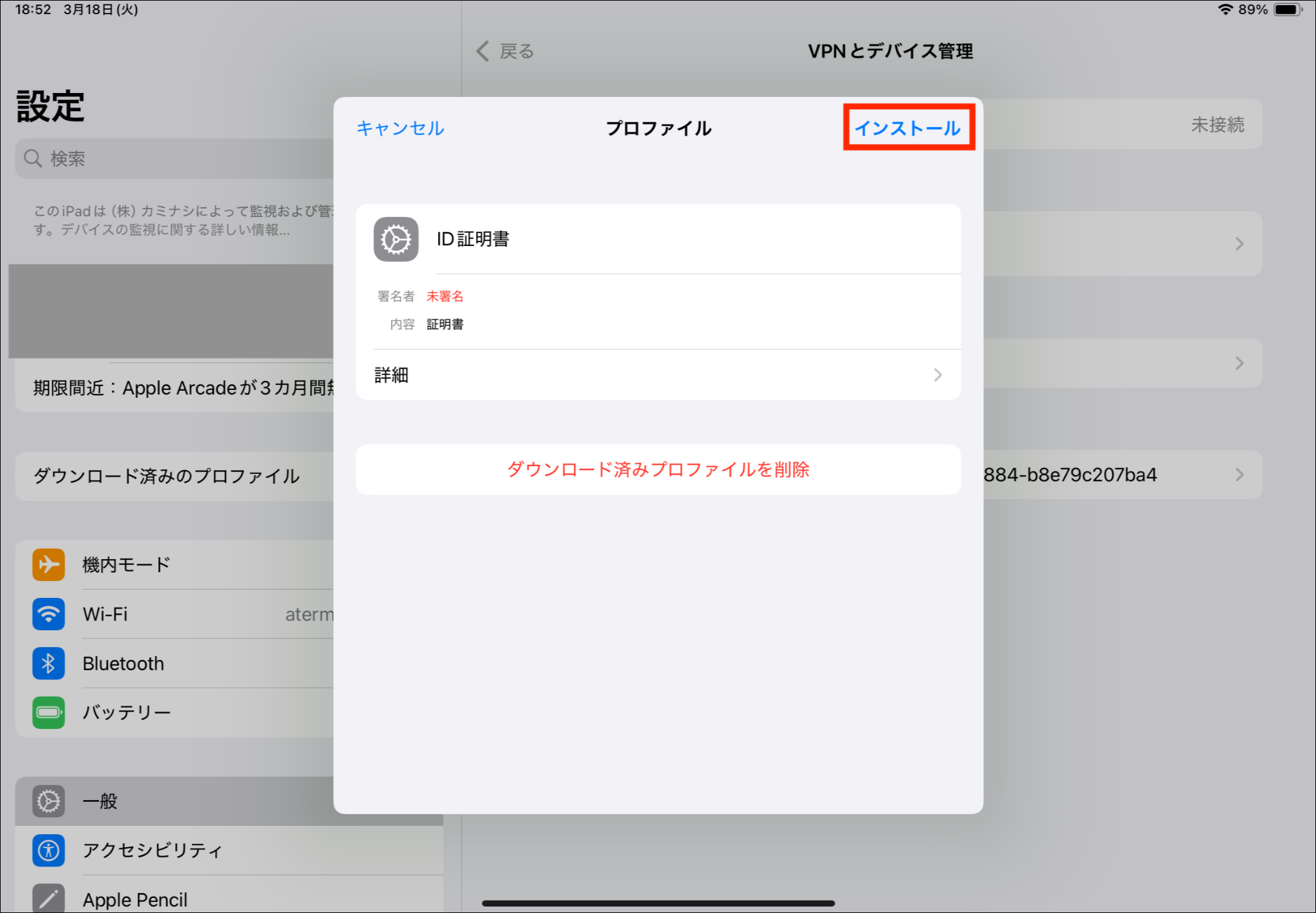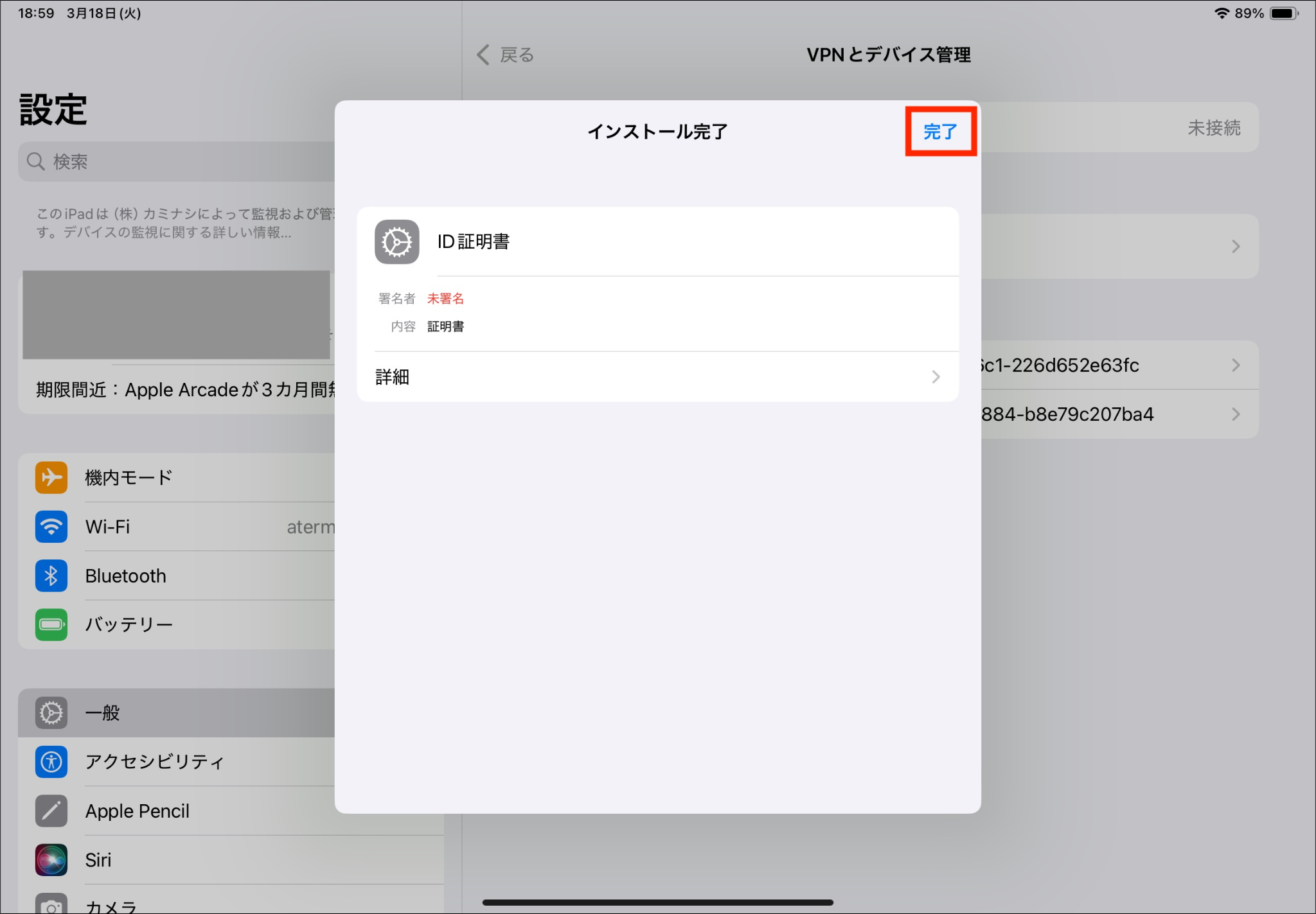 証明書インストール後、正常に設定が完了しているかを確認することができます。