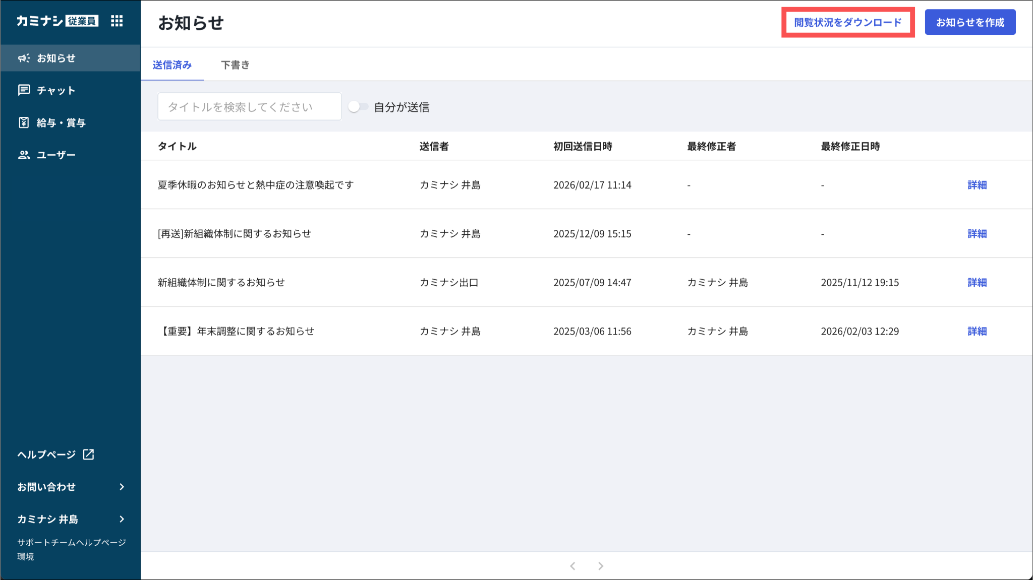 指定した期間に初めて配信されたお知らせの情報をダウンロードできます。