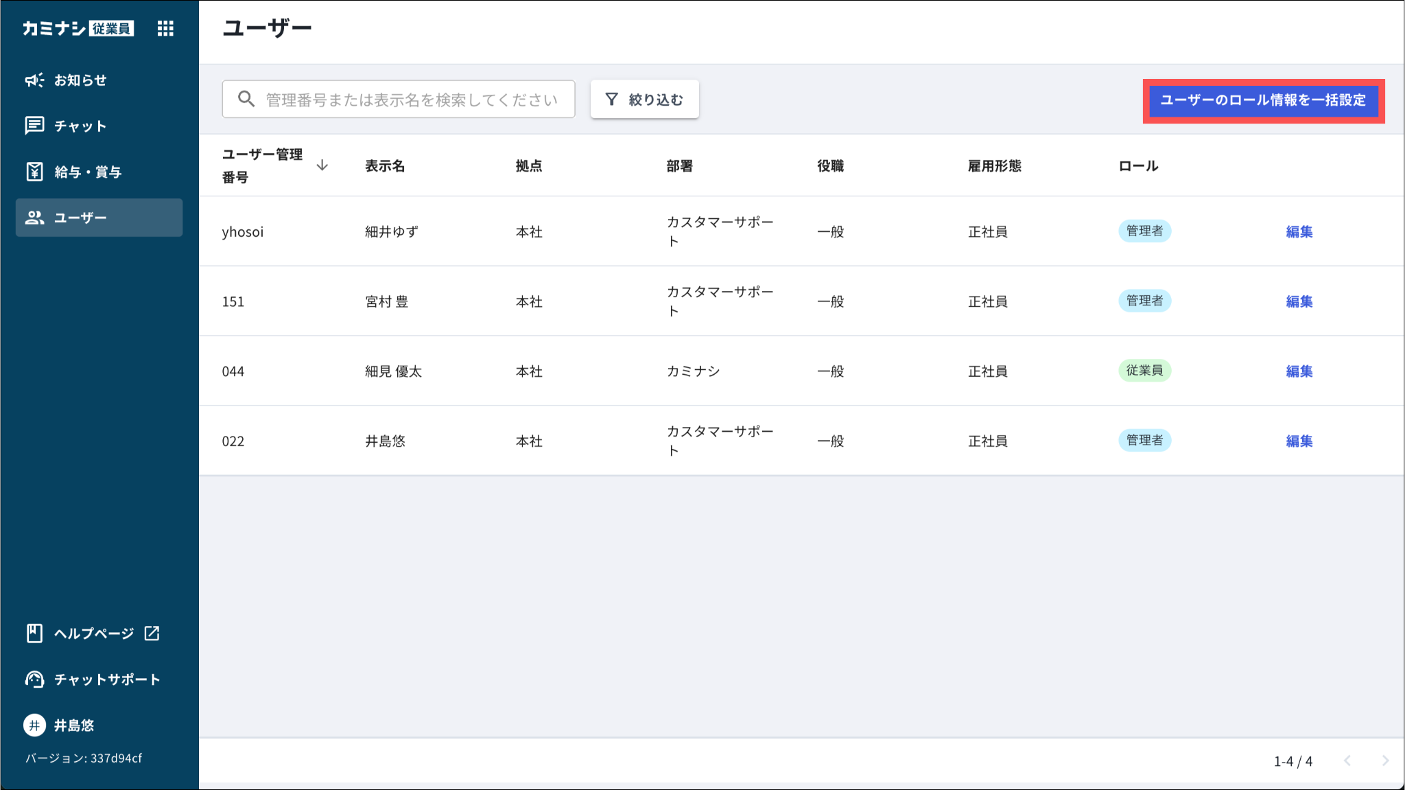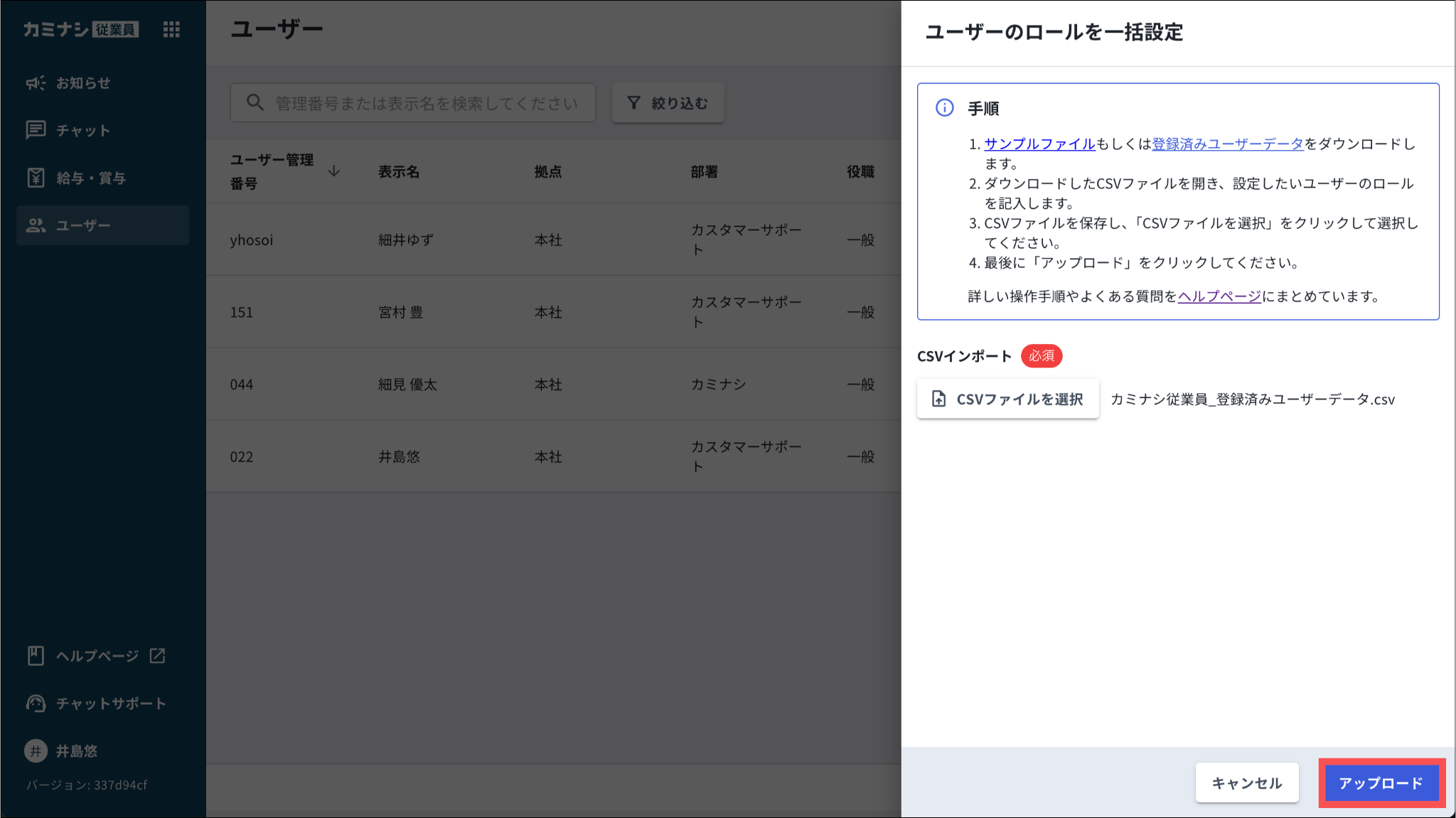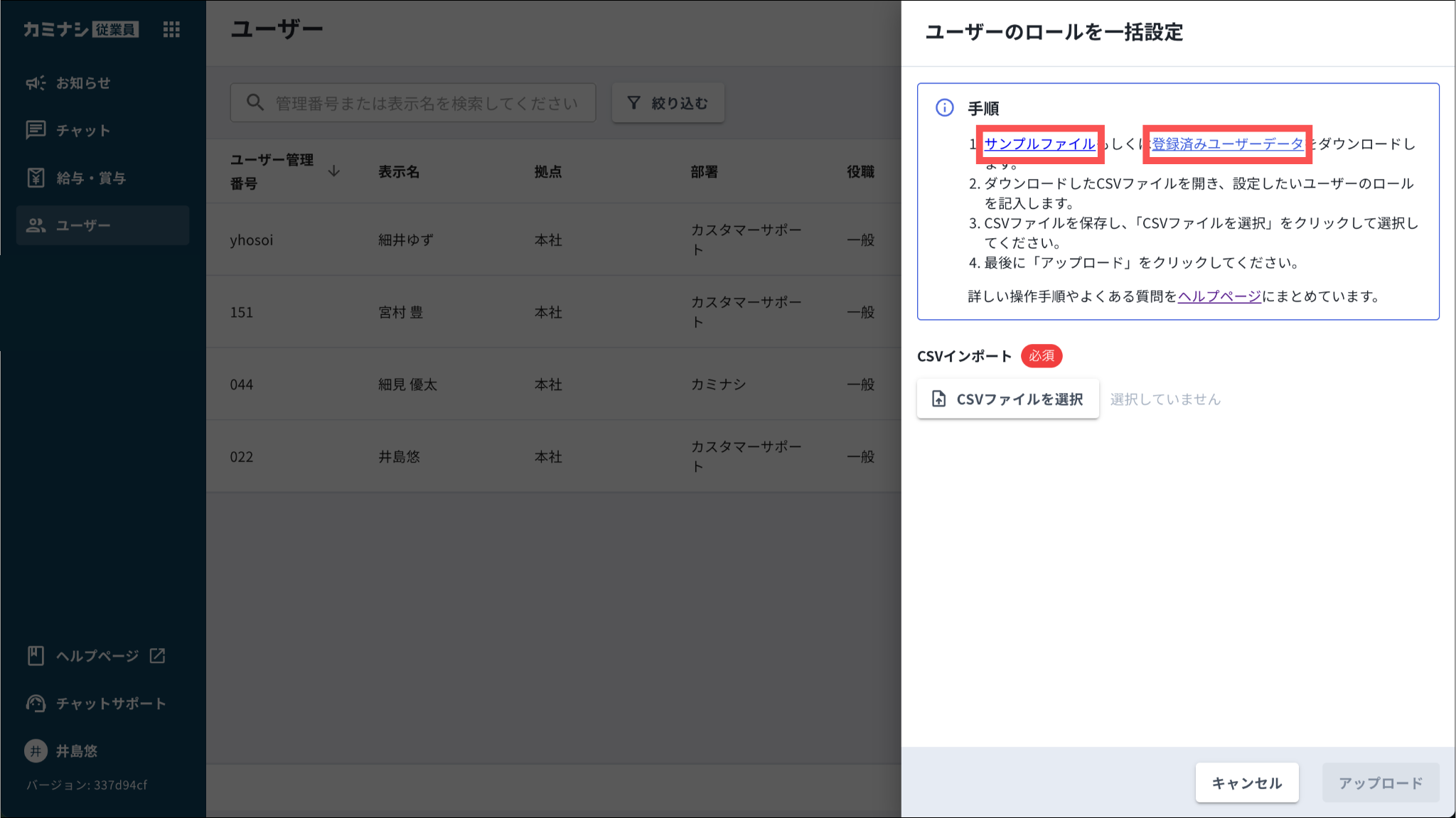 なお、本機能ではCSVファイル内の「ユーザー管理番号」を起点に、記載されているユーザーロールを一括で更新します。
