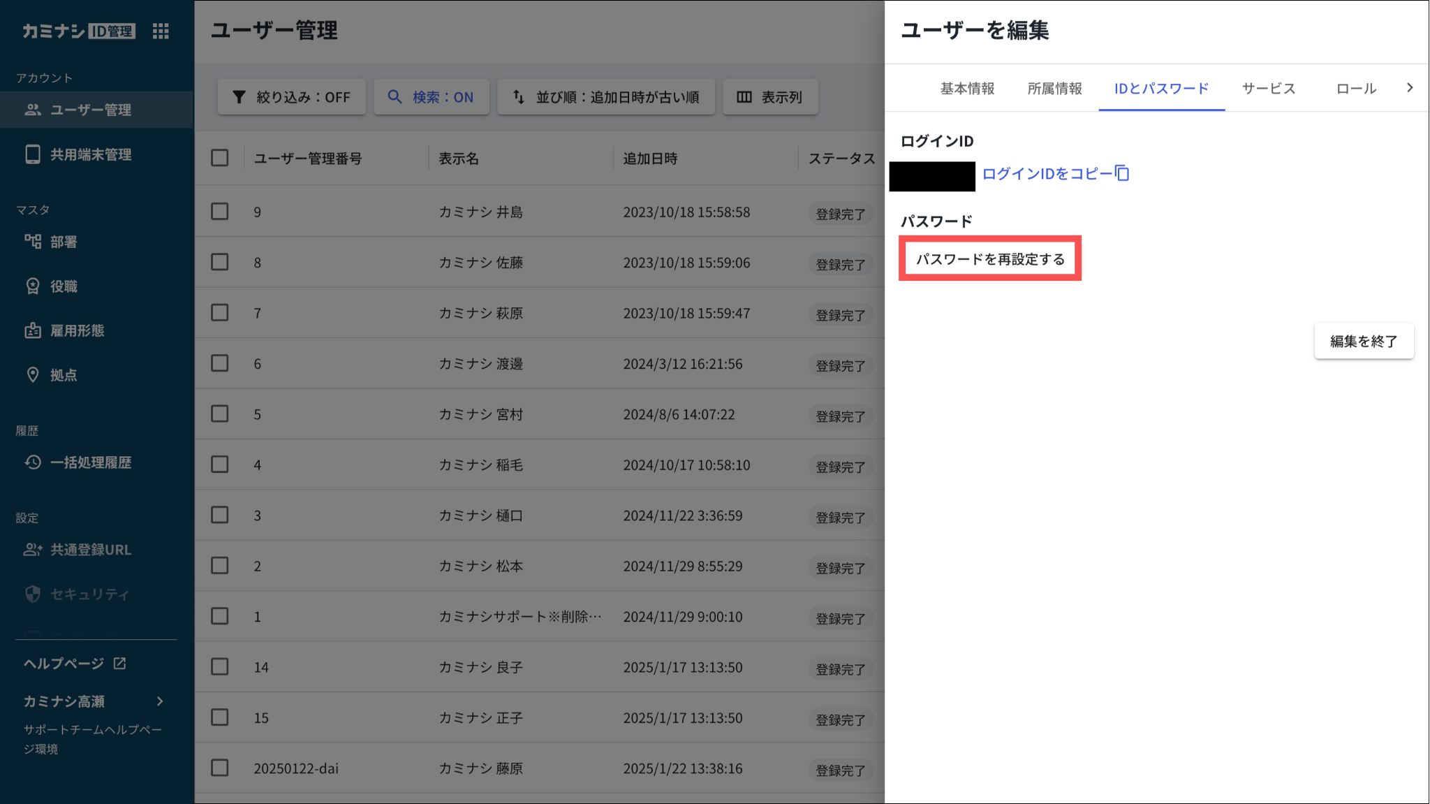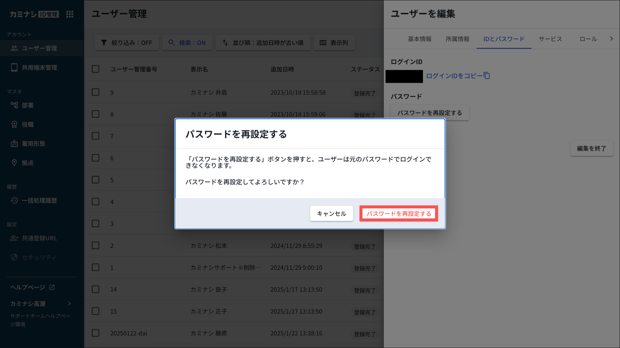 画面に表示されたポリシーに準拠した文字数、文字種を使用して、ログインIDと異なる文字列を使用してください。