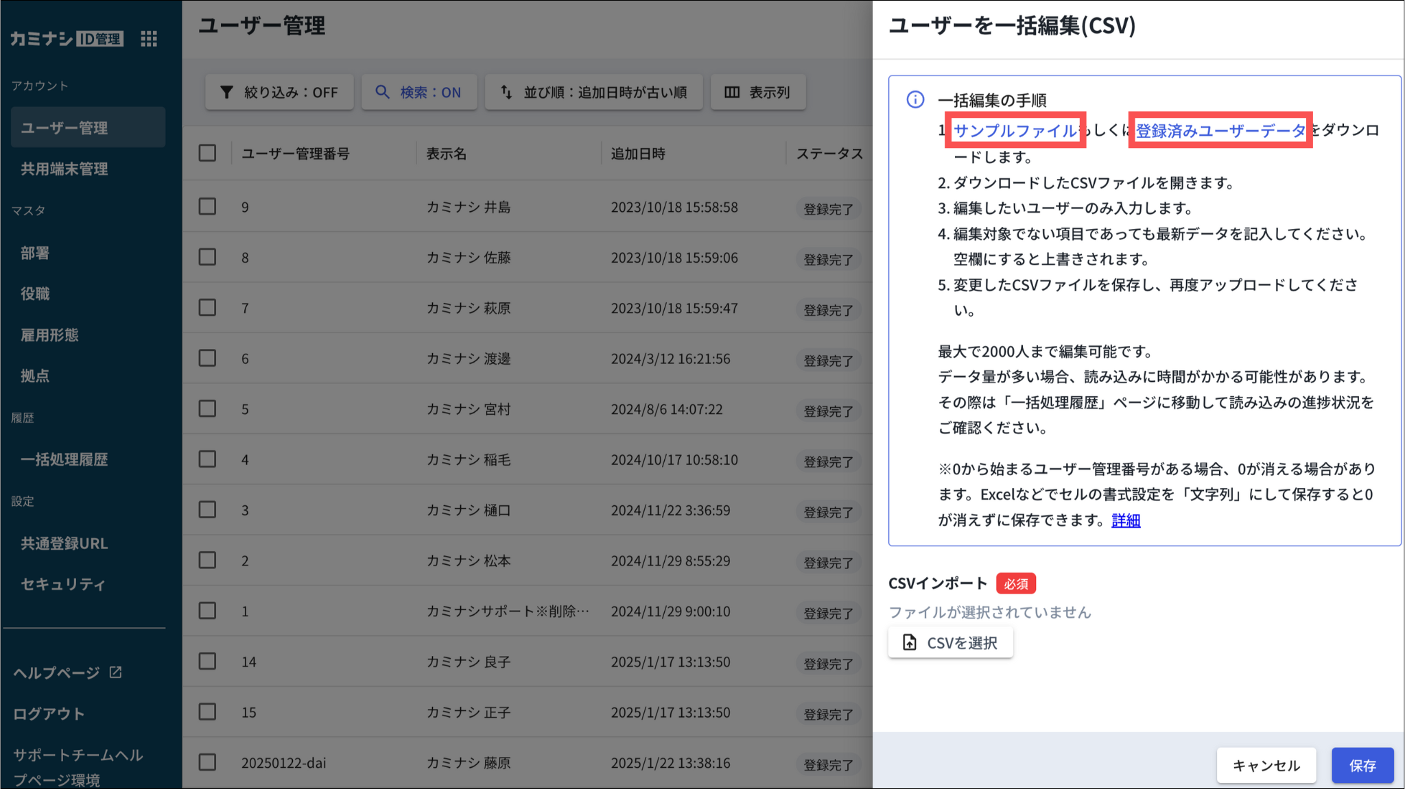 ユーザーをCSVで一括編集する