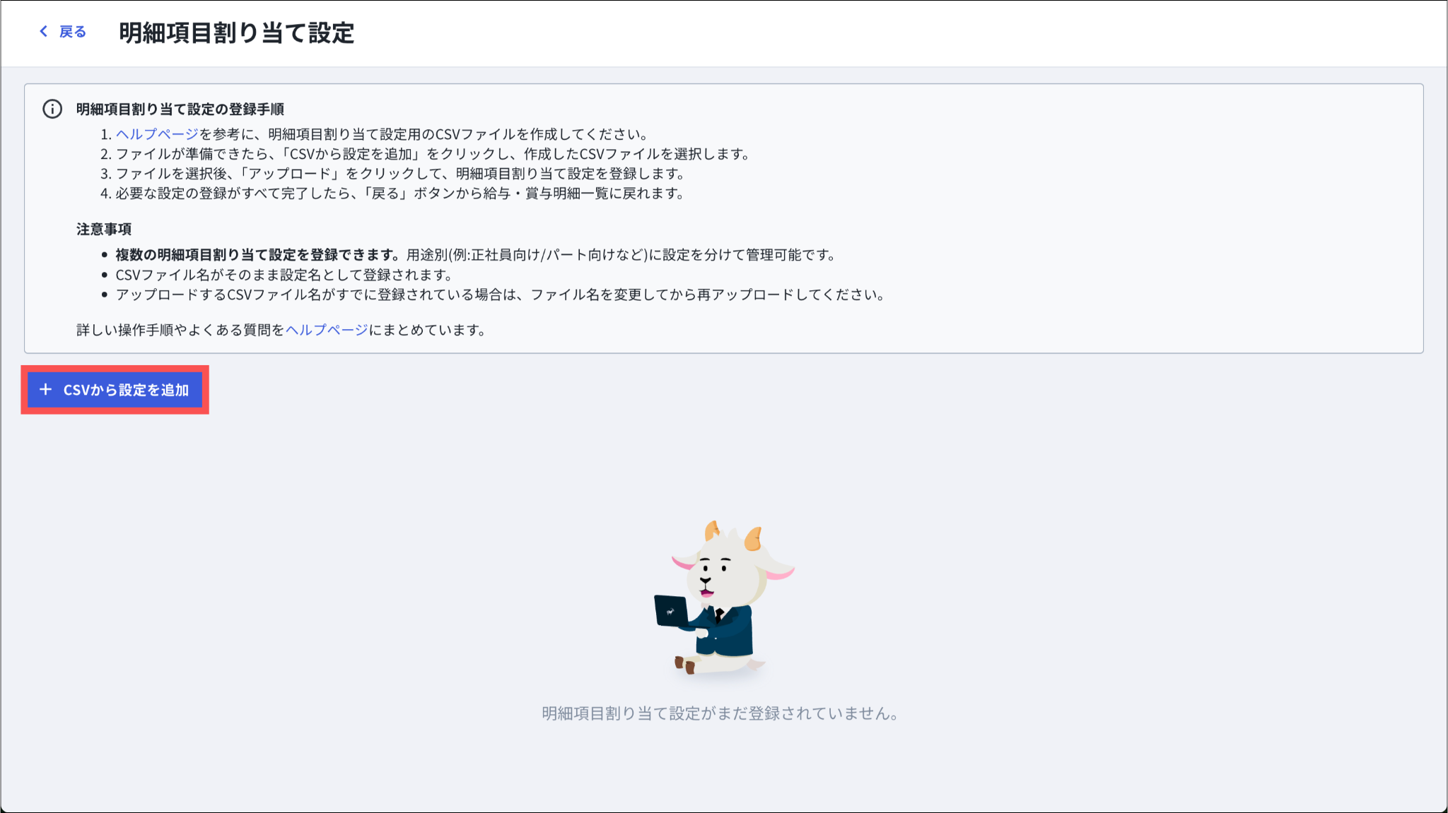 取り込んだCSVファイル名がそのまま設定名として登録されます。