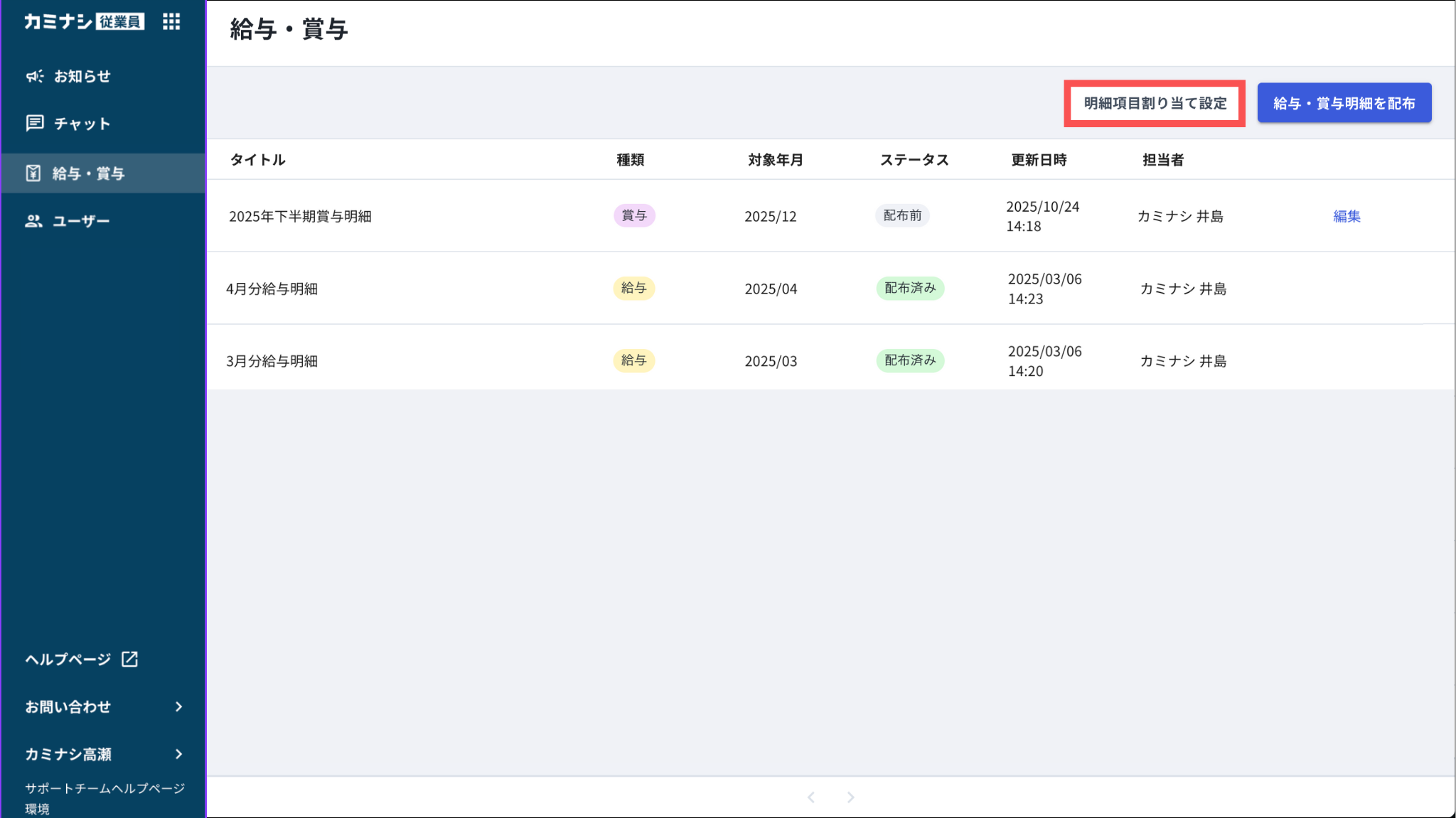 ※明細種別を「非表示」に設定した場合は、Myカミナシの画面上でもその項目は表示されなくなります。