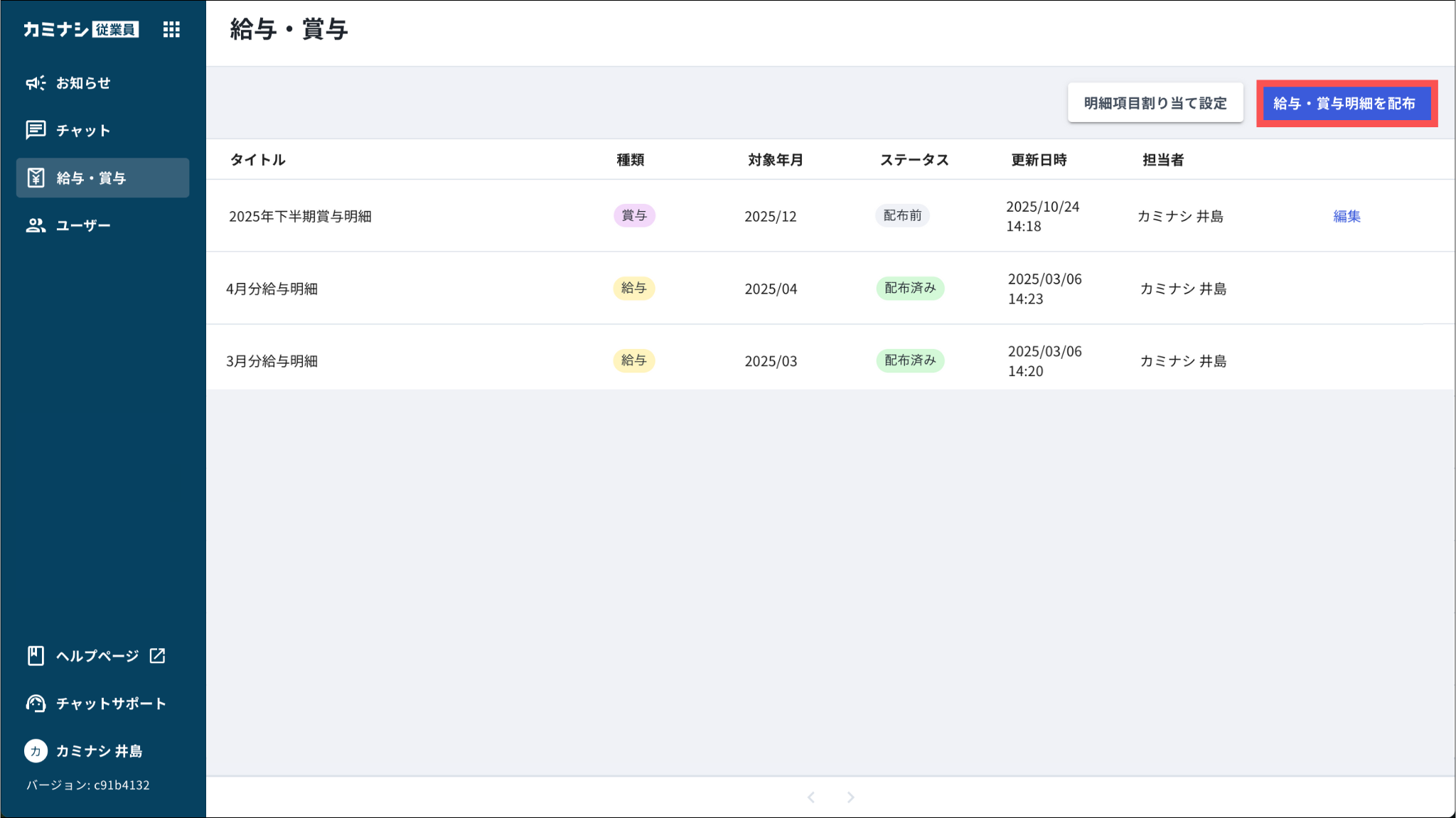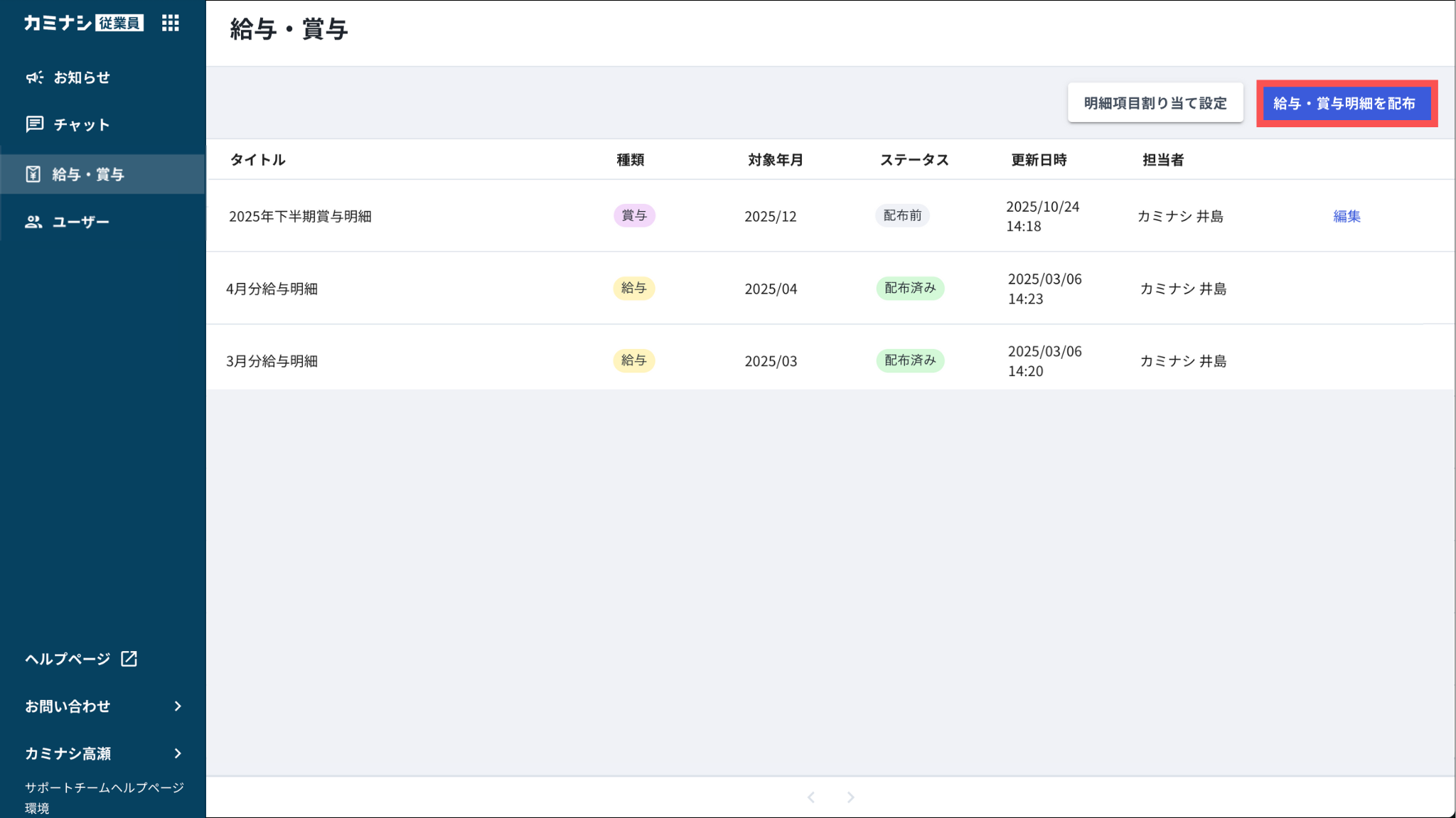 Myカミナシで、明細タイトル(種類+年月)の後ろに表示される、従業員向けの補足文です。