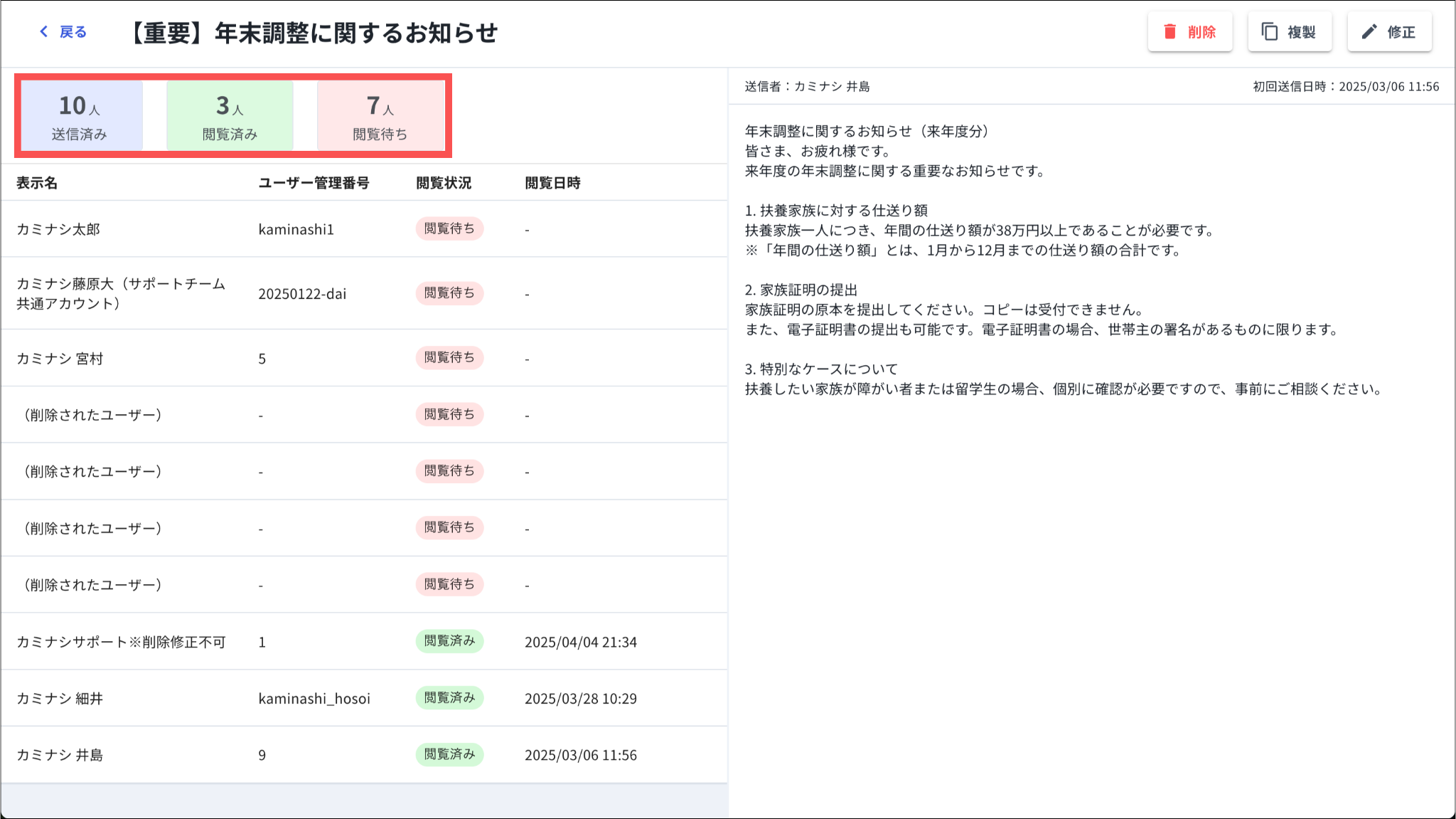 閲覧待ちユーザーはリストの最後にグループ化され、そのグループ内はユーザー管理番号の昇順で並びます。