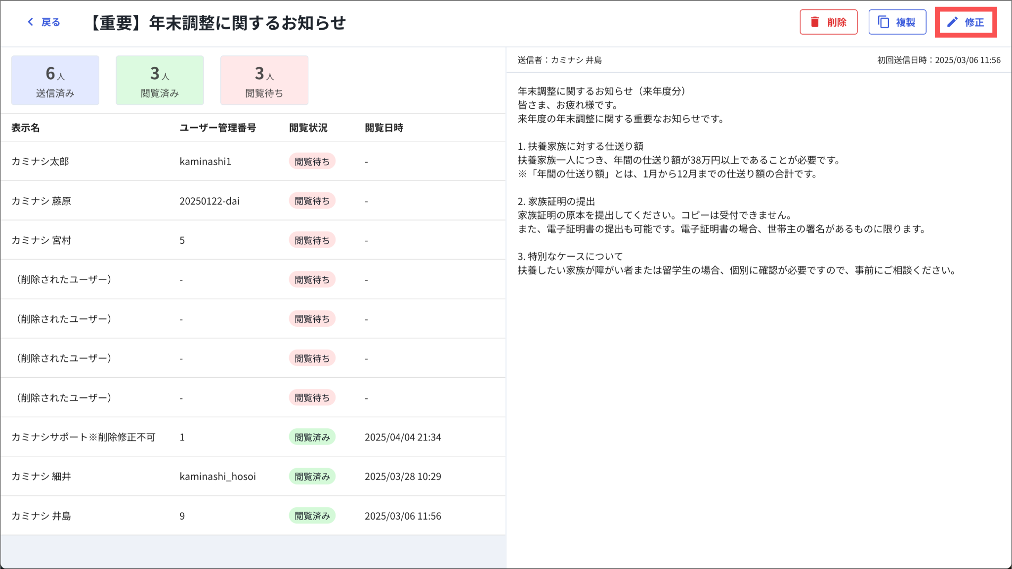 ※編集後も、既にお知らせを閲覧した方の情報はそのまま残ります。
