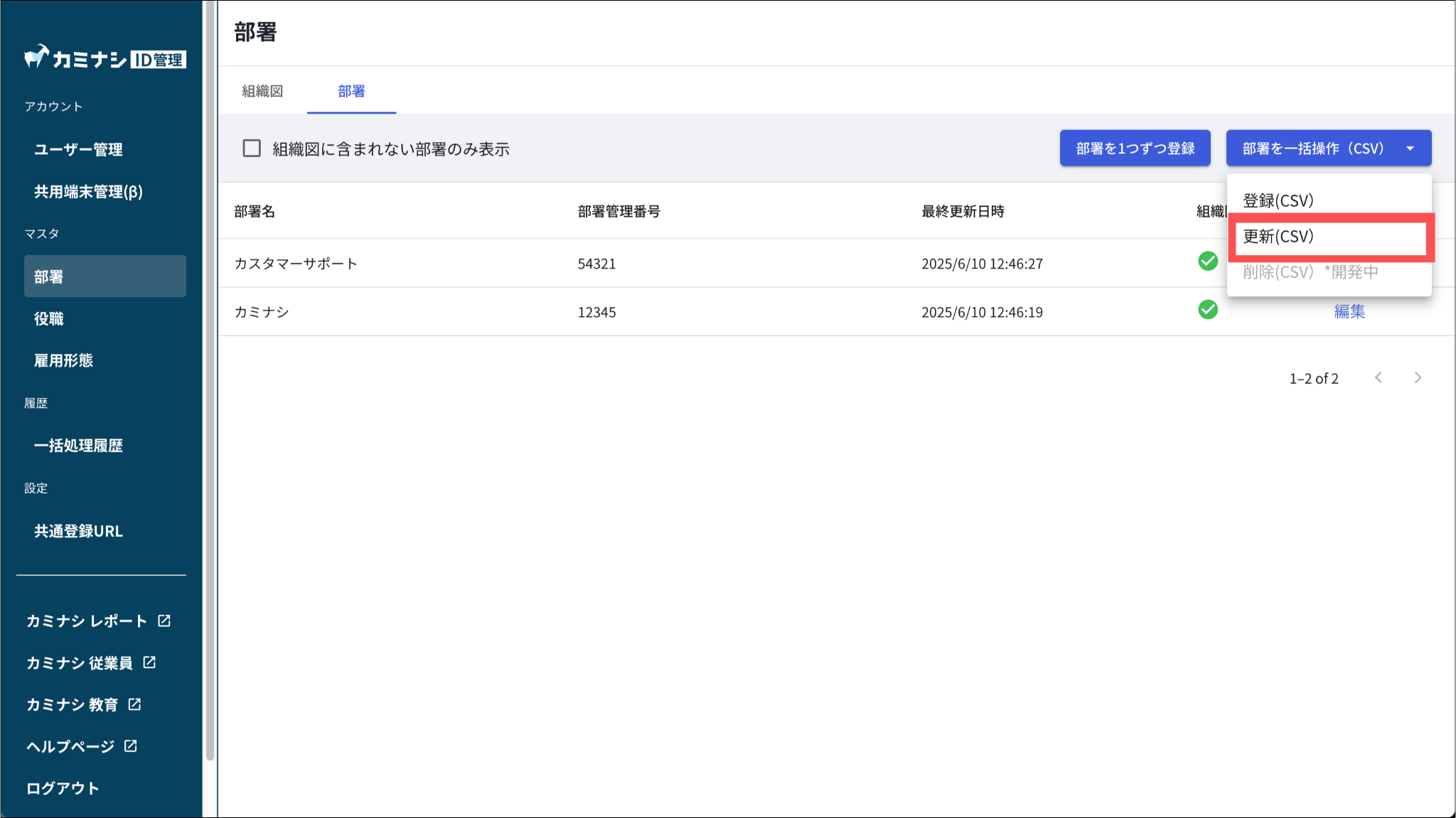 今回のリリースにより、CSVファイルを用いた部署名の一括編集が可能になりました。