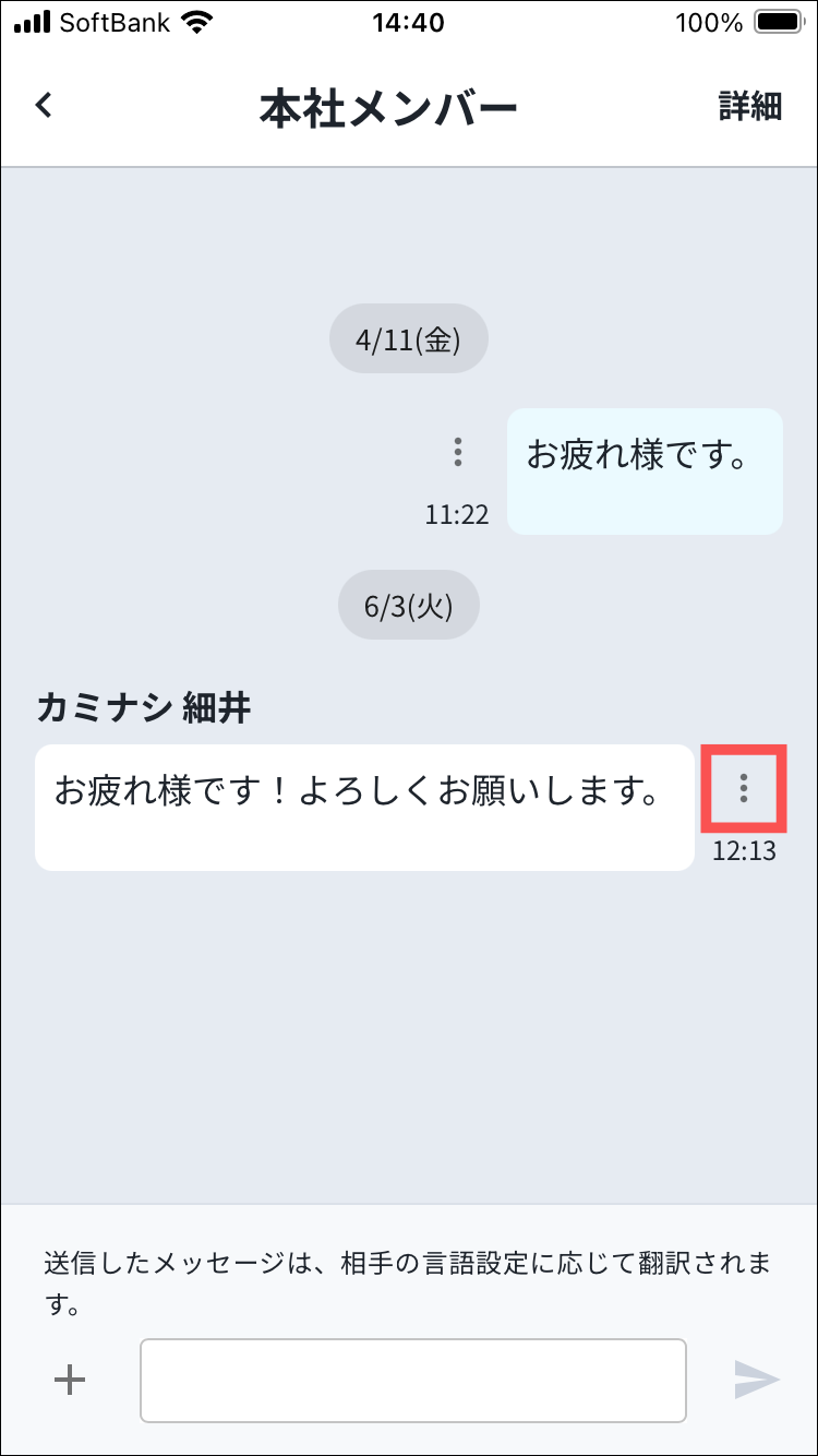 今回のリリースにより、メッセージの横に表示されている三点リーダー(︙)のアイコンを押すだけで表示され、より直感的に各種メニューをご利用いただけます。