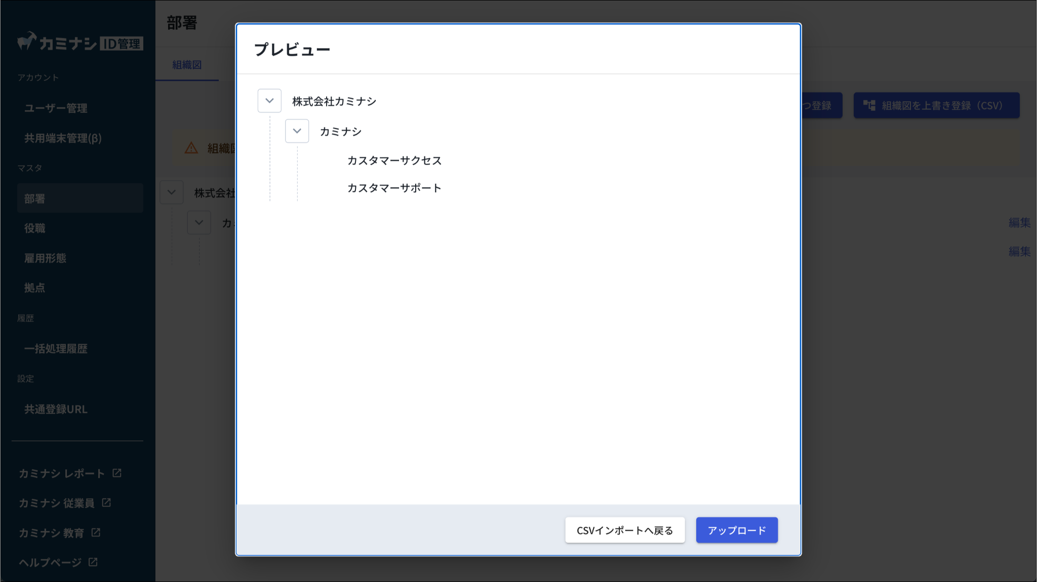 今回のリリースにより、組織図を登録する前に、ツリー構造で登録内容を視覚的に確認できるようになり、設定ミスを防ぐことができます。