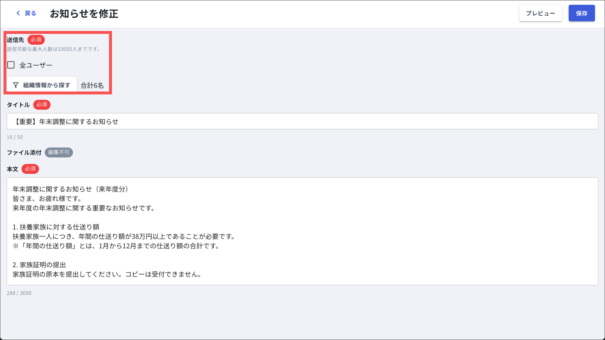 今回のリリースにより、送信した後でもお知らせの編集画面から送信先ユーザーを自由に追加・削除できるようになり、運用の手間が大幅に削減されます。