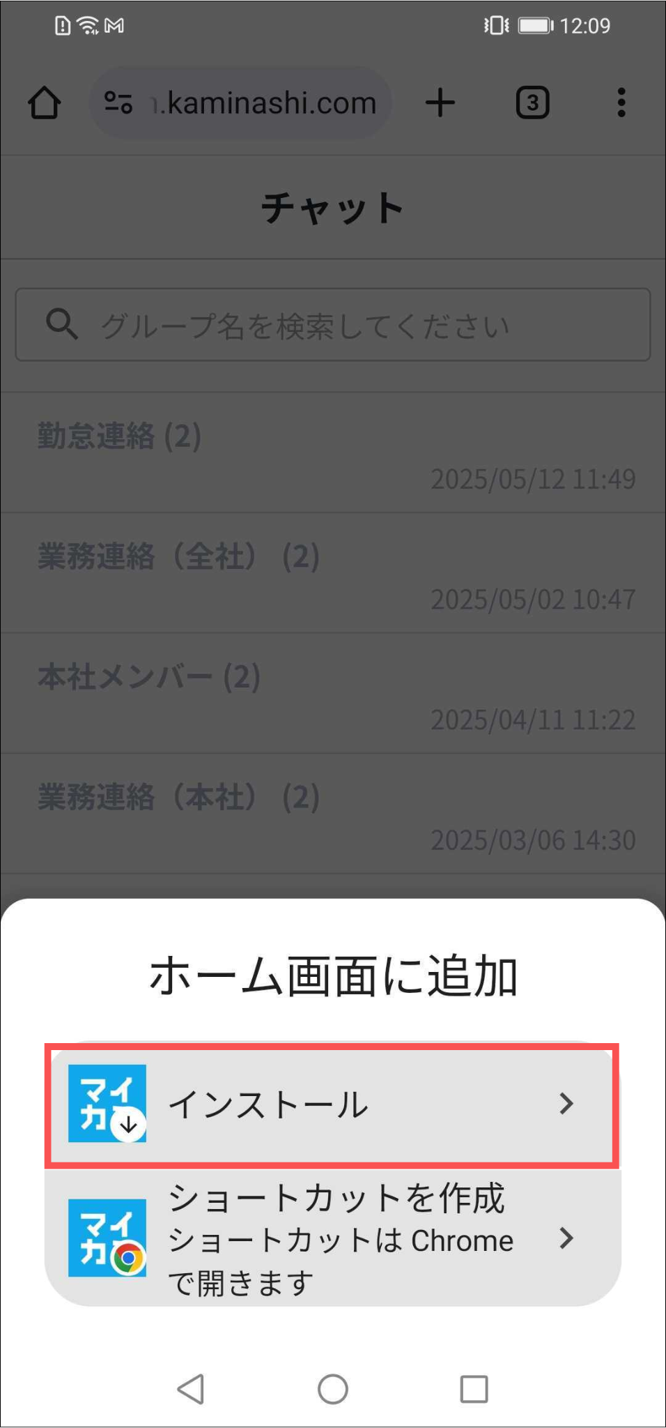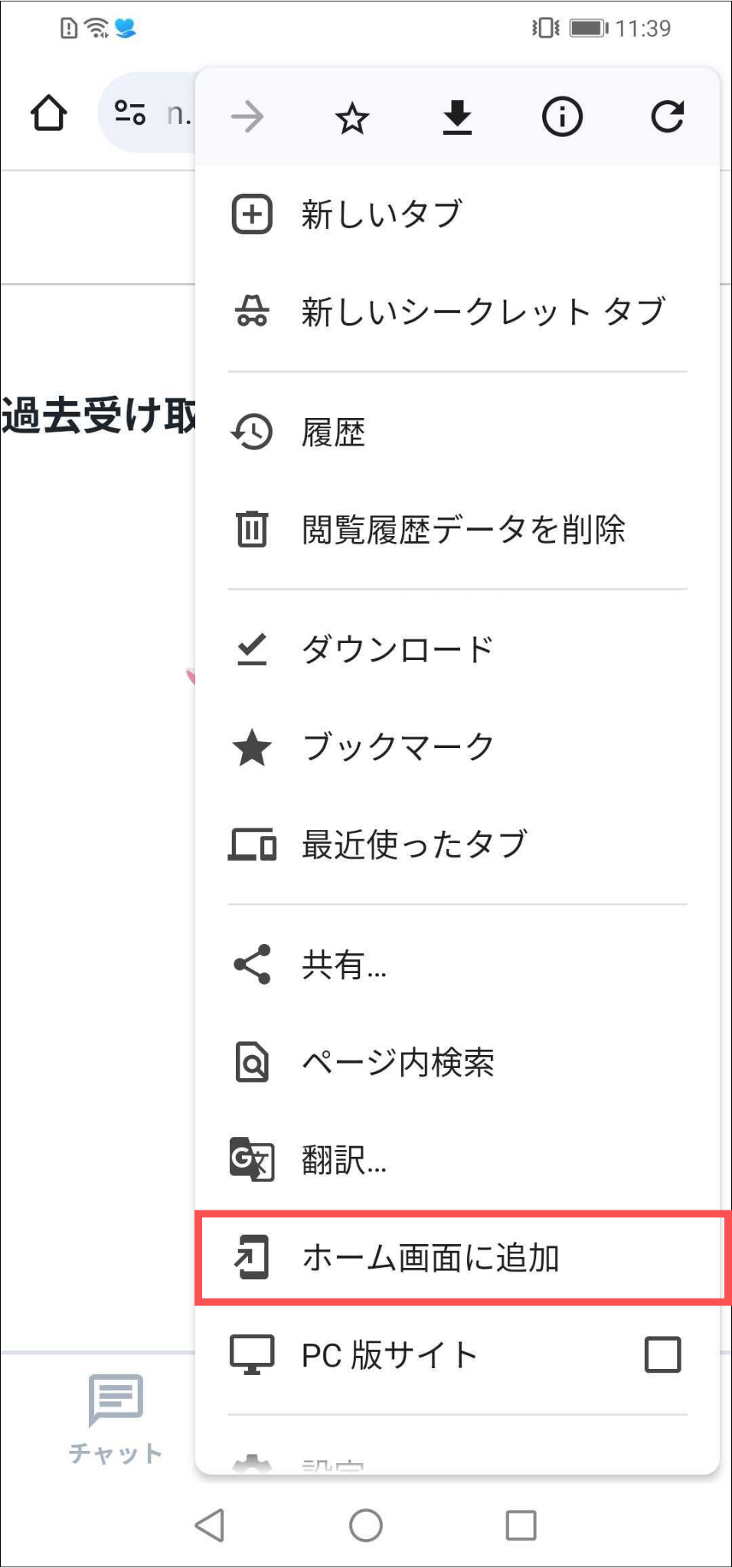 「ホーム画面に追加」が表示されない場合は、お使いの環境がサポート対象か、シークレットモードで開いていないかご確認ください。