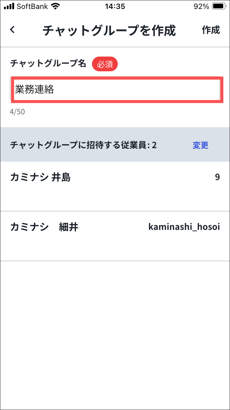 Myカミナシでチャットグループを作成する