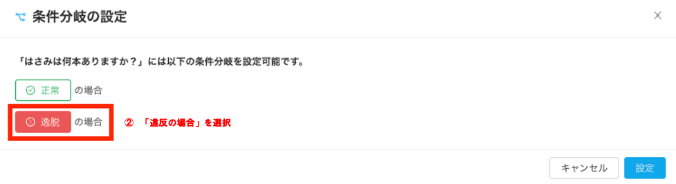 必要本数の数値ルール設定後、条件分岐のボタンを押します。