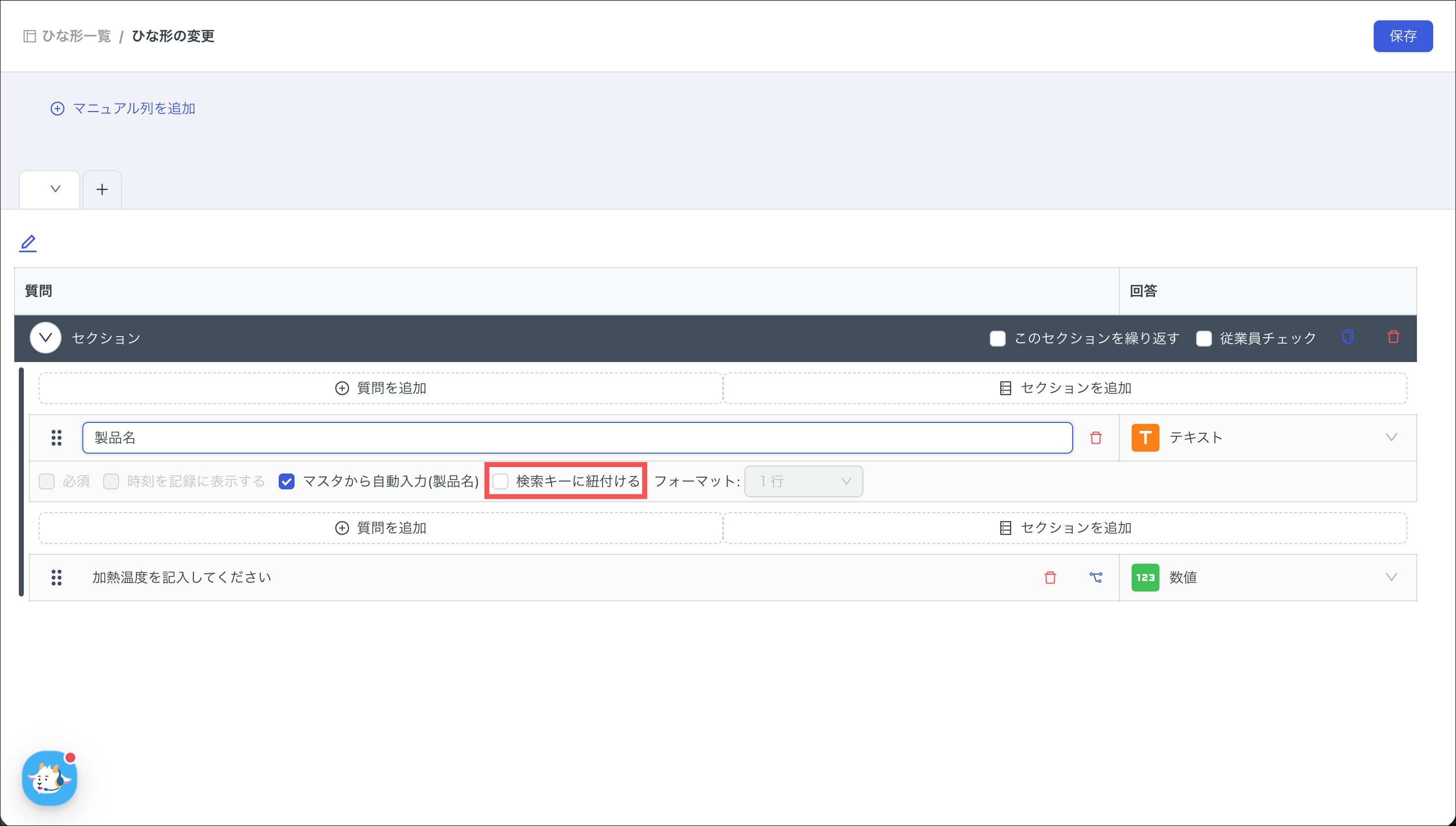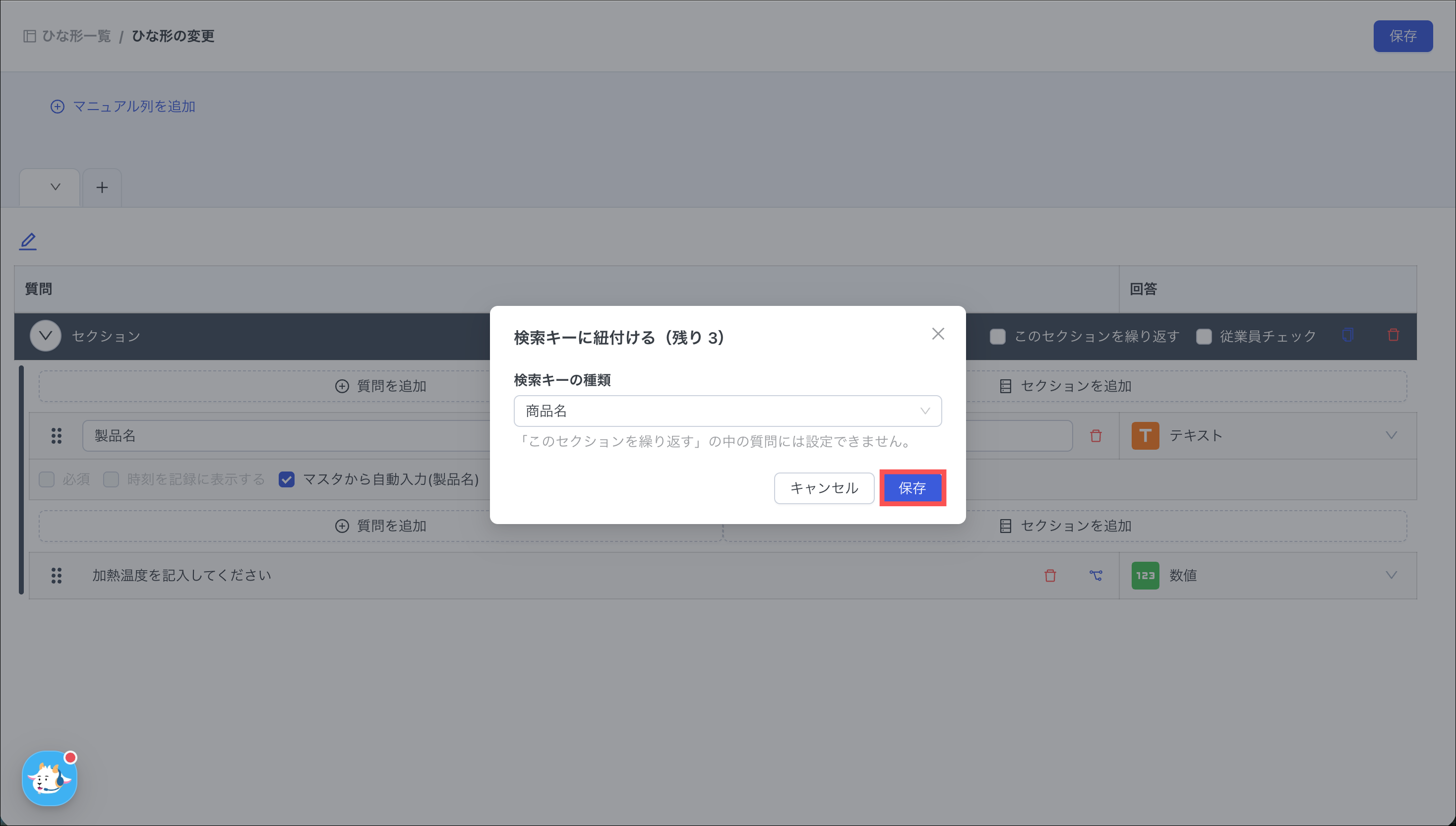 検索キーを紐づけることができる回答形式は「テキスト」「セット選択肢」「日時(日付・日時)」のみです。