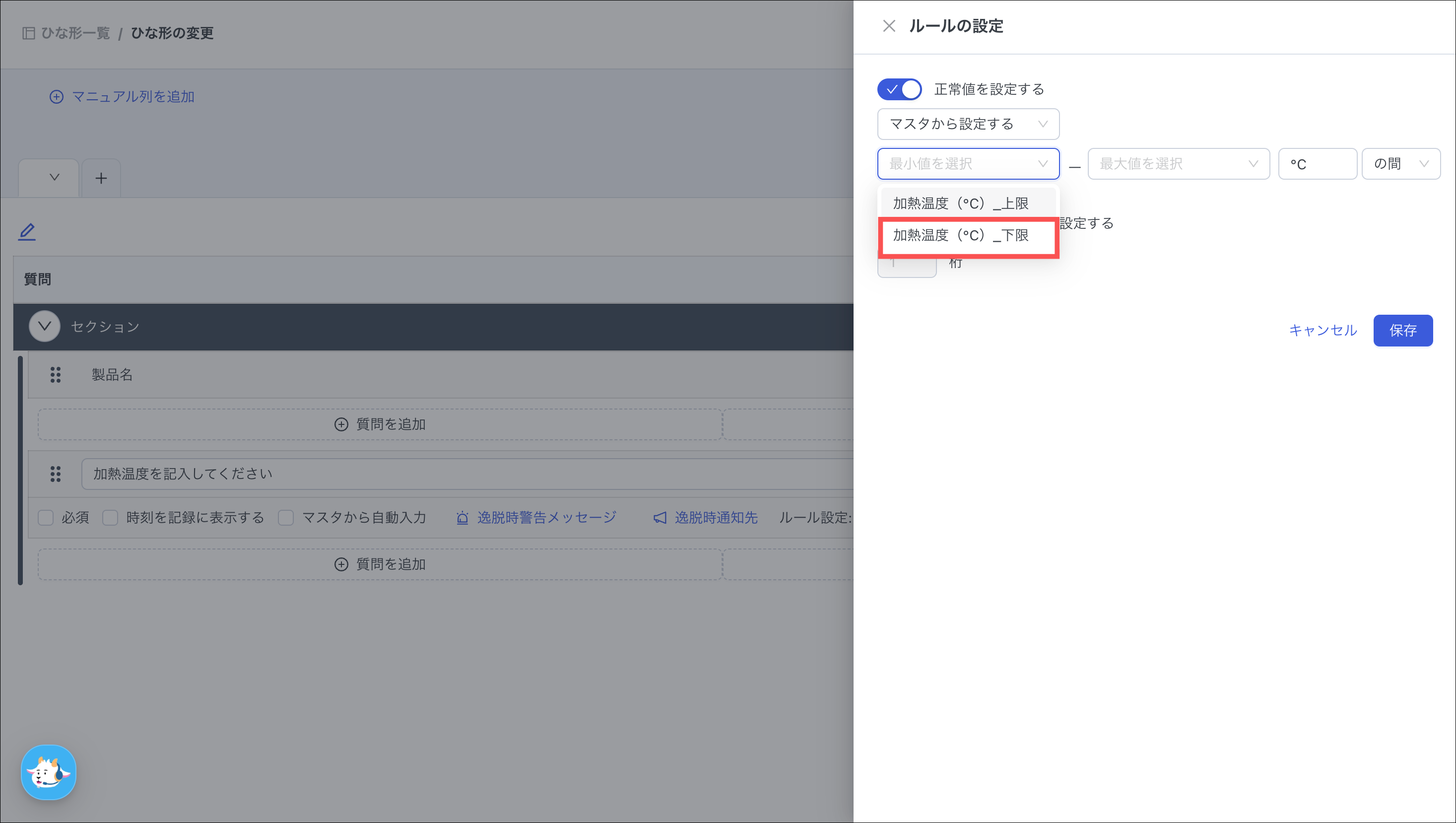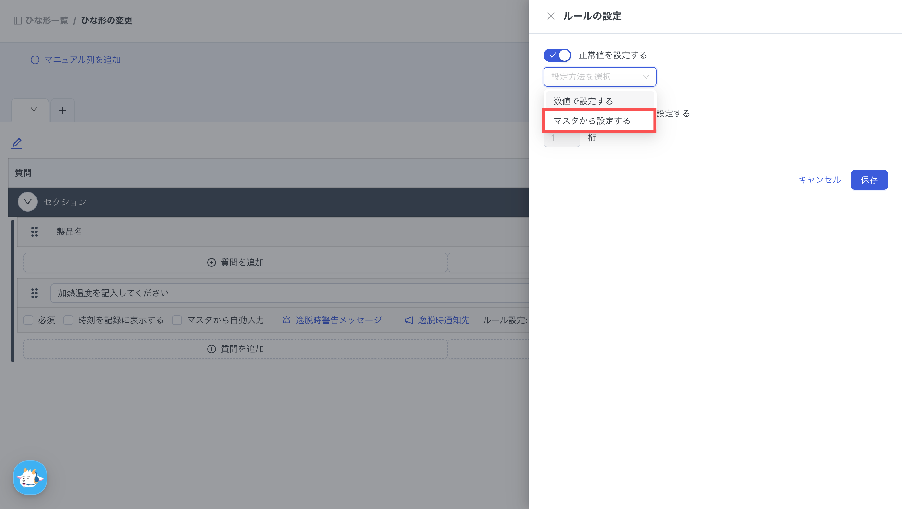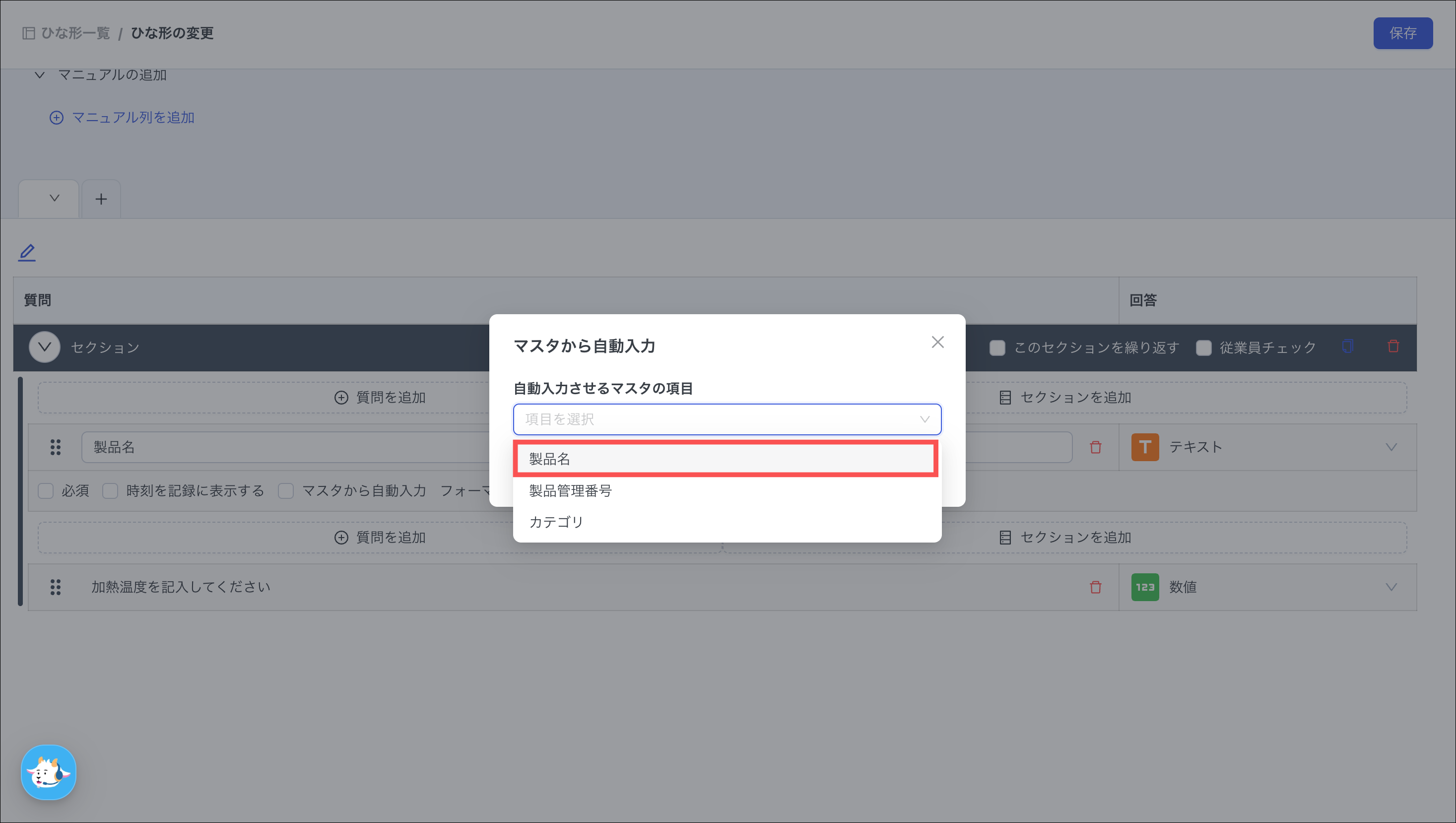 製品ごとに記録したレポートを確認/検索できるように設定を行います。