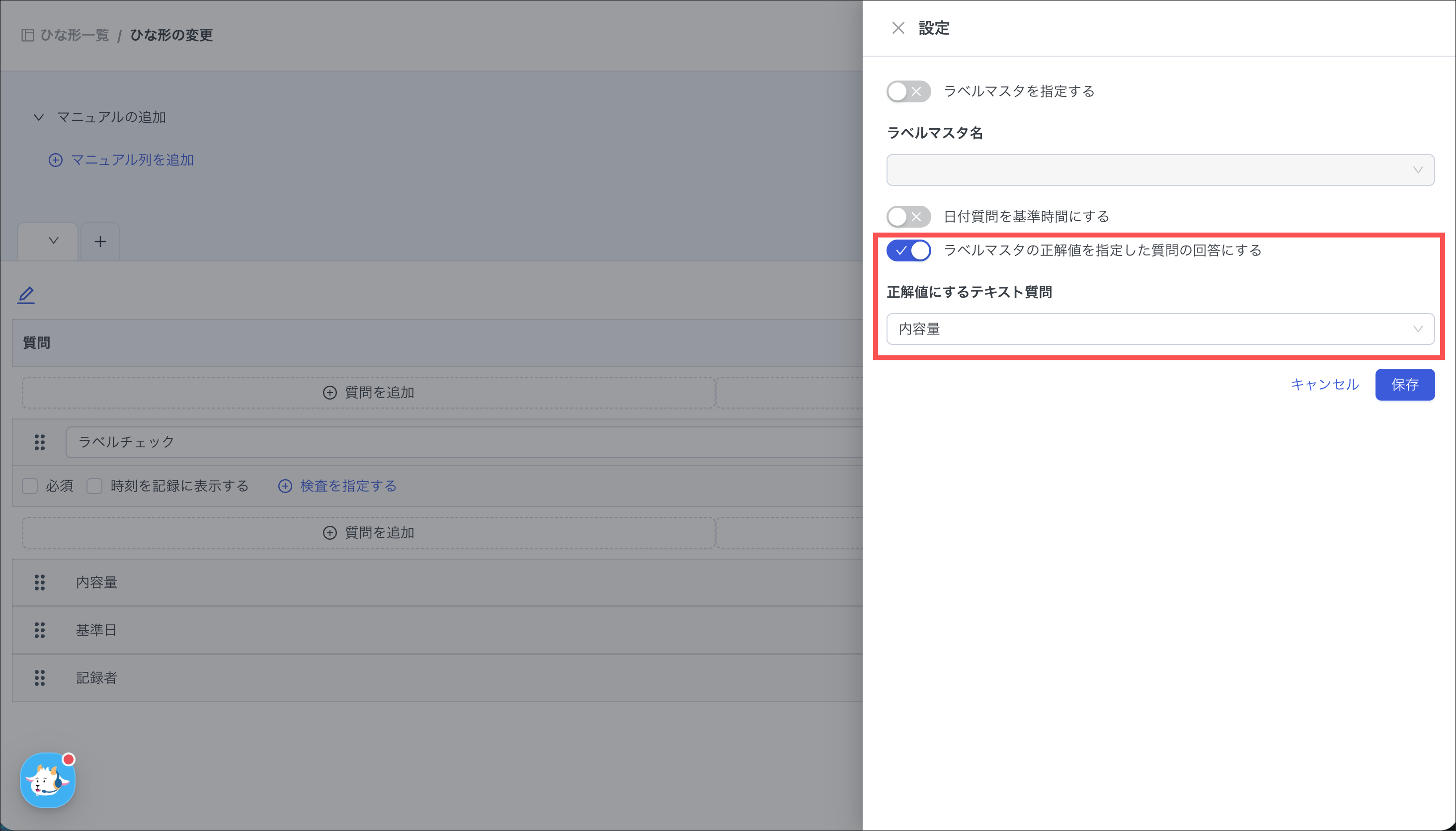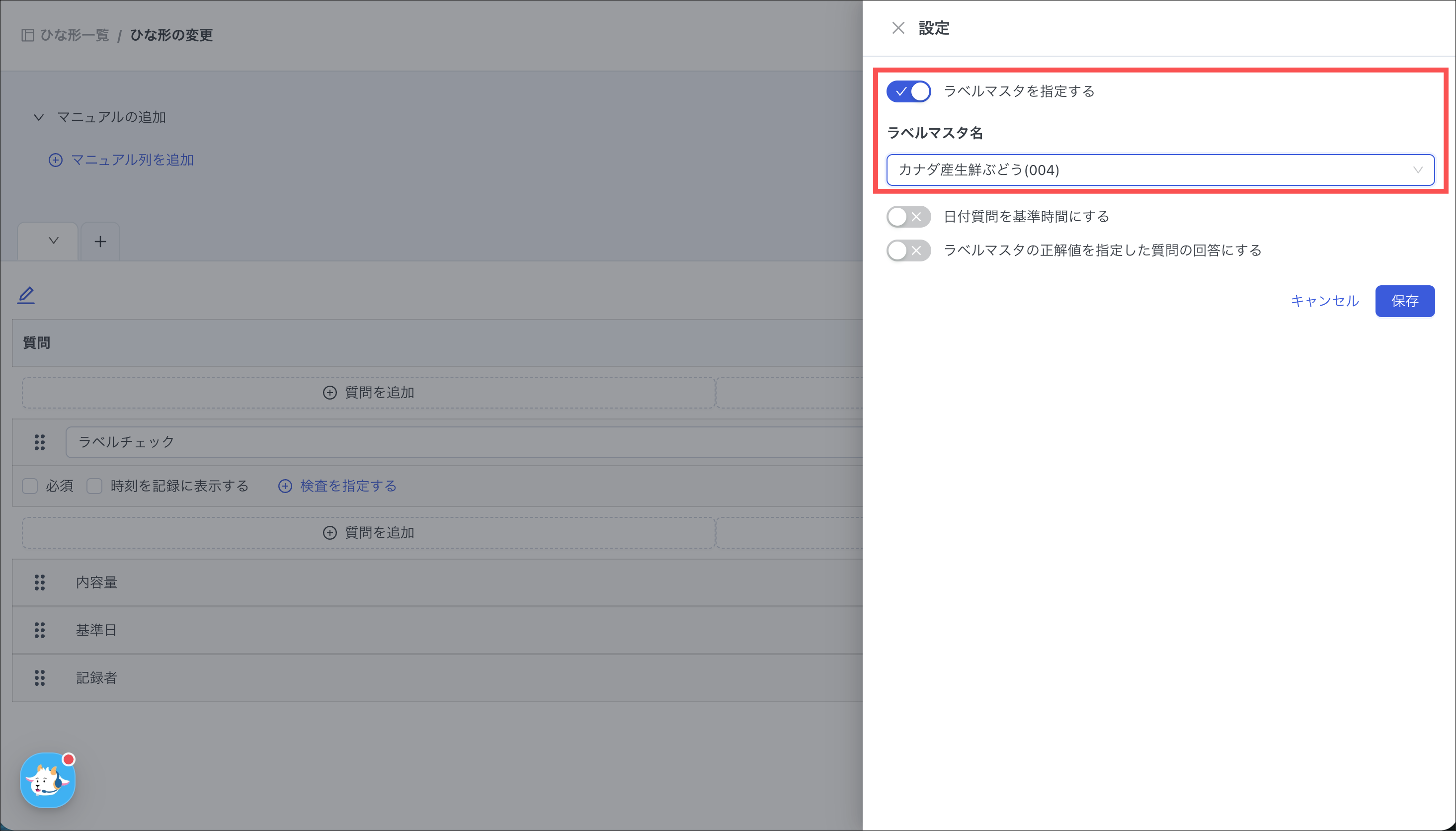 質問項目に対して、検査の基準となるラベルマスタをあらかじめ指定しておくことができます。