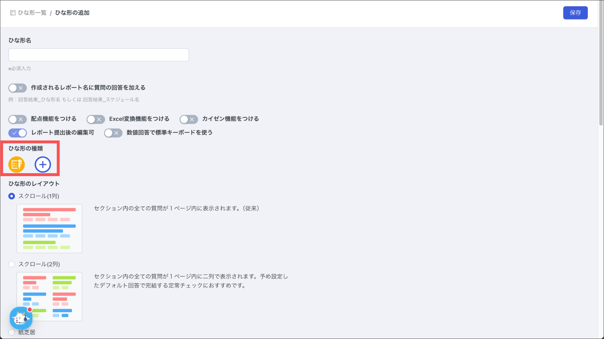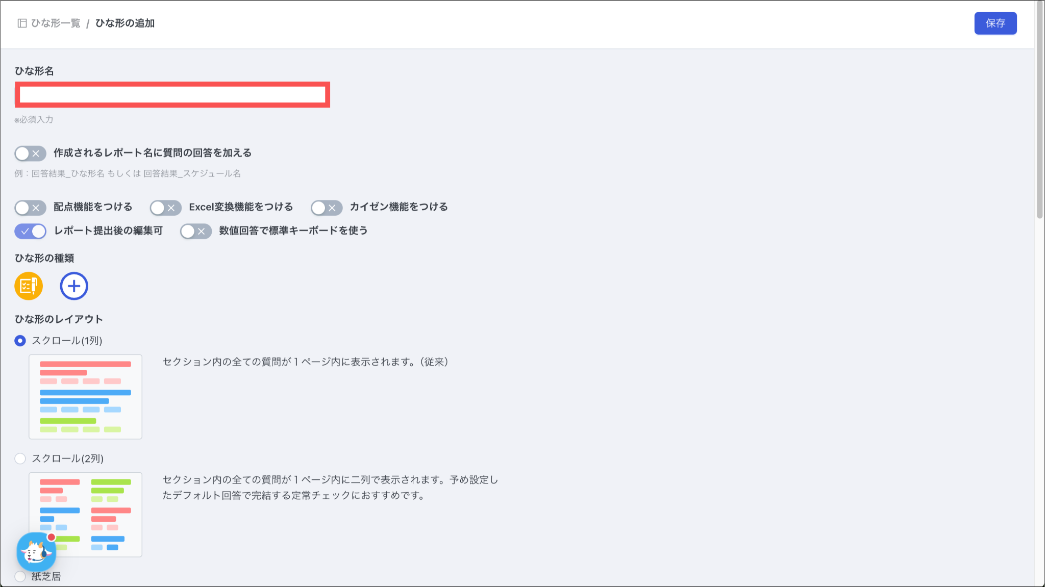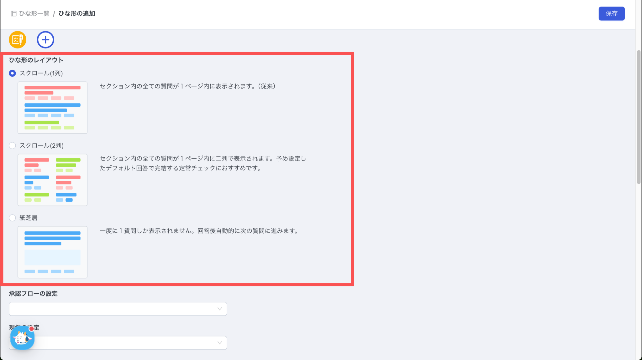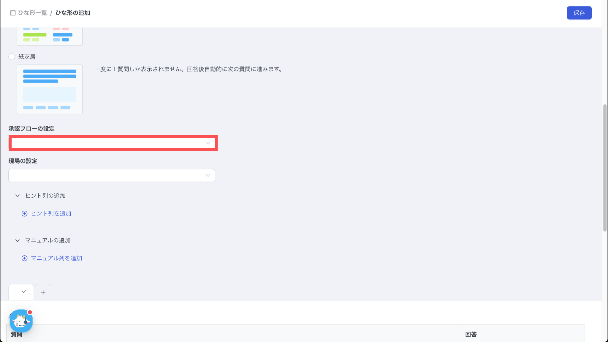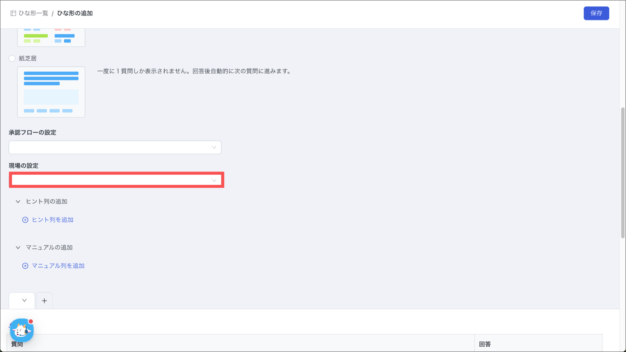 ひな形の質問と回答の設定については、「ひな形に質問を作成する」をご参照ください。