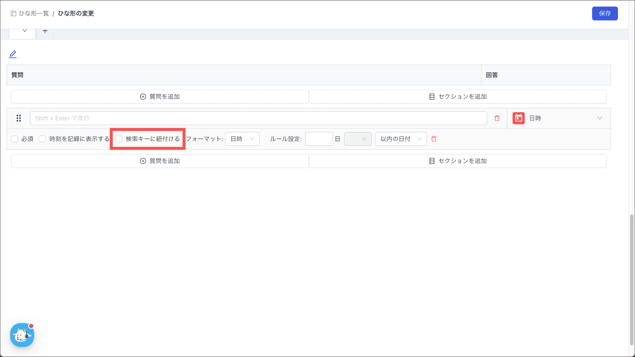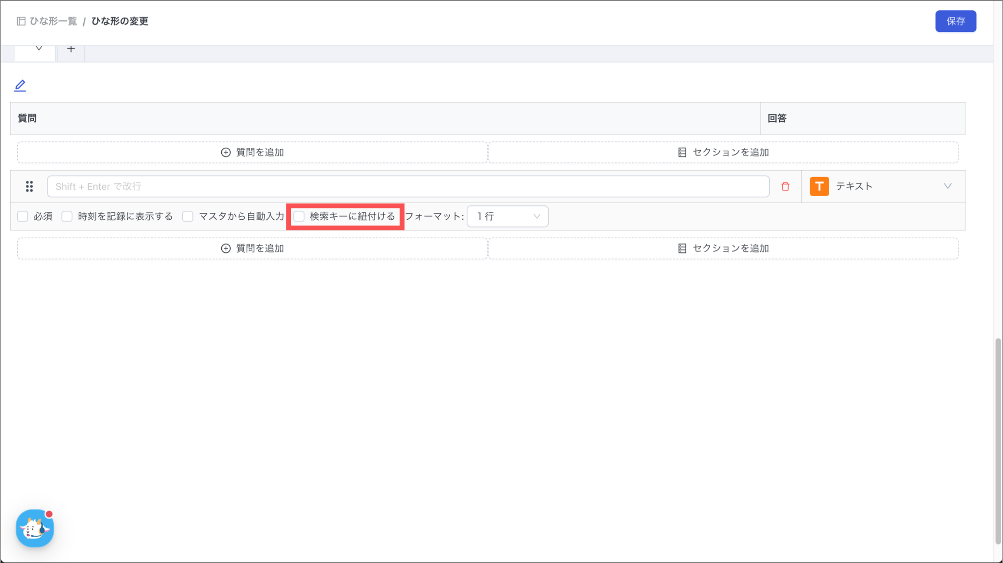 「□検索キーに紐付ける」にチェックをいれると、その回答の内容を使って、あとからレポートを検索できるようになります。