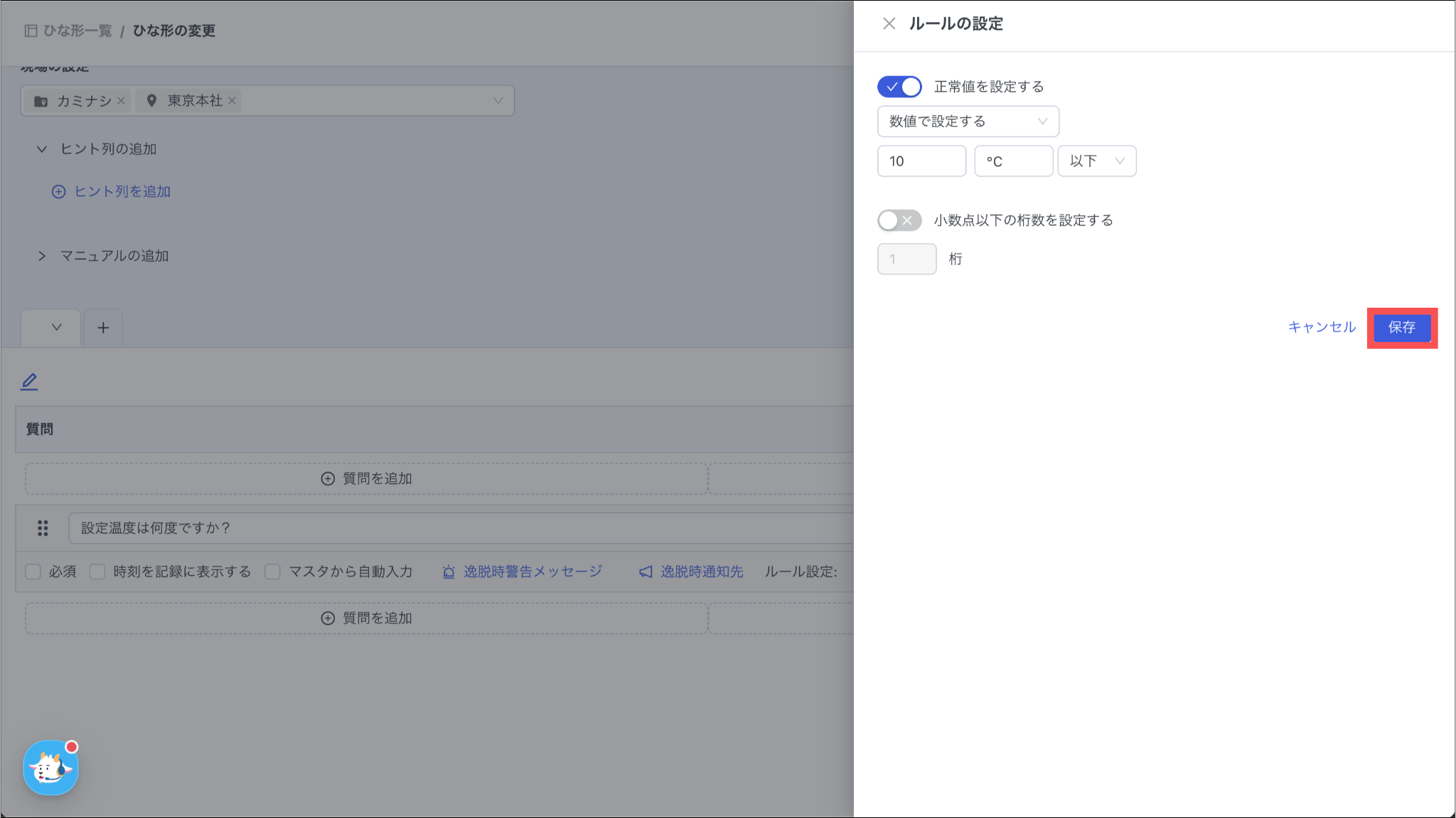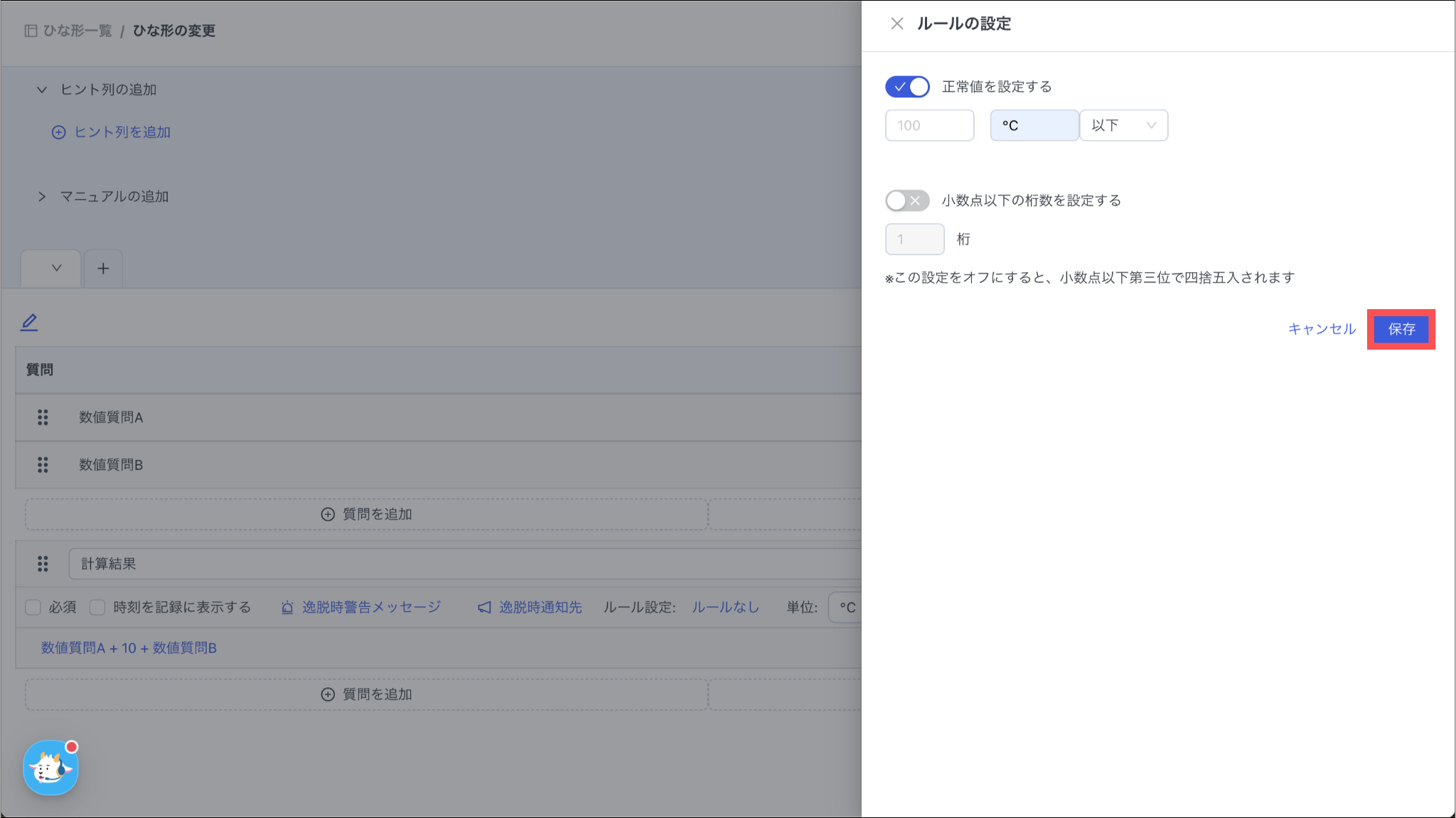 また、「小数点以下の桁数を設定する」をオンにすると、小数点を含む細かい数値についてもルールを決めることができます。