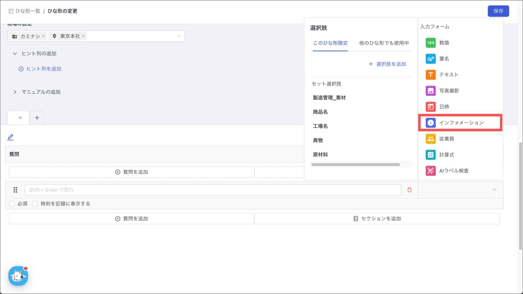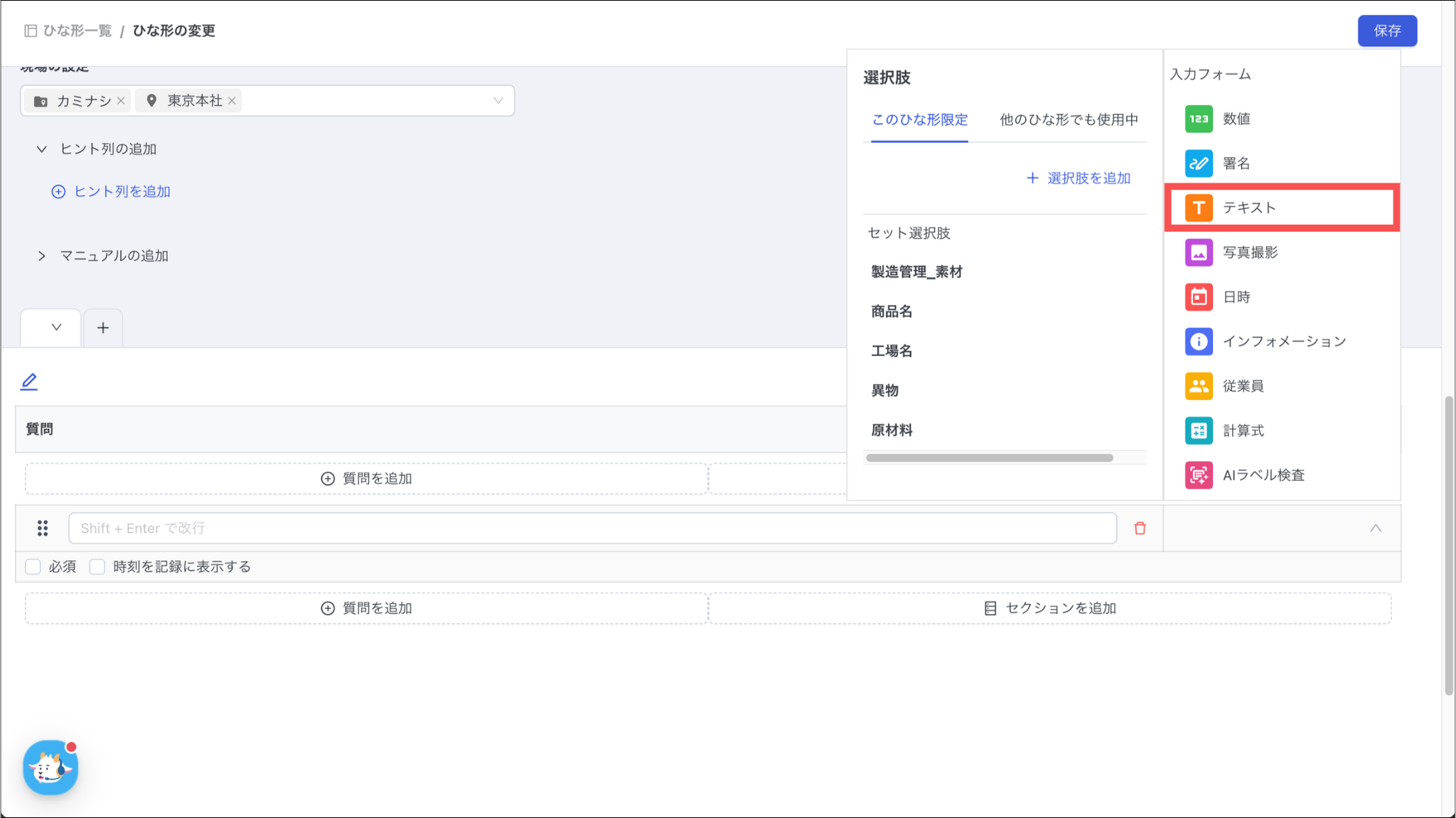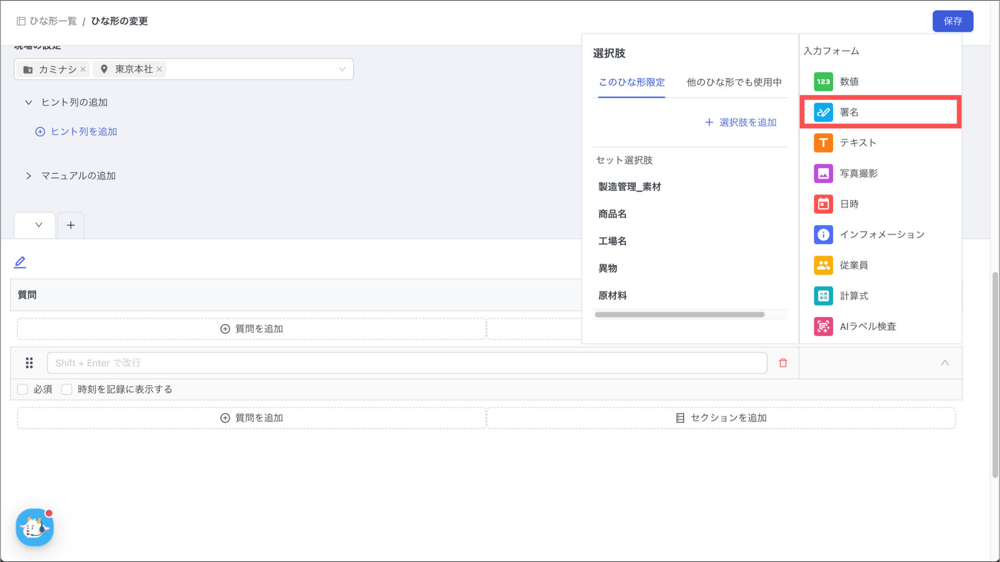 この回答形式を選んでおくと、レポートを記録するときに、その場で手書き文字を入力することができます。