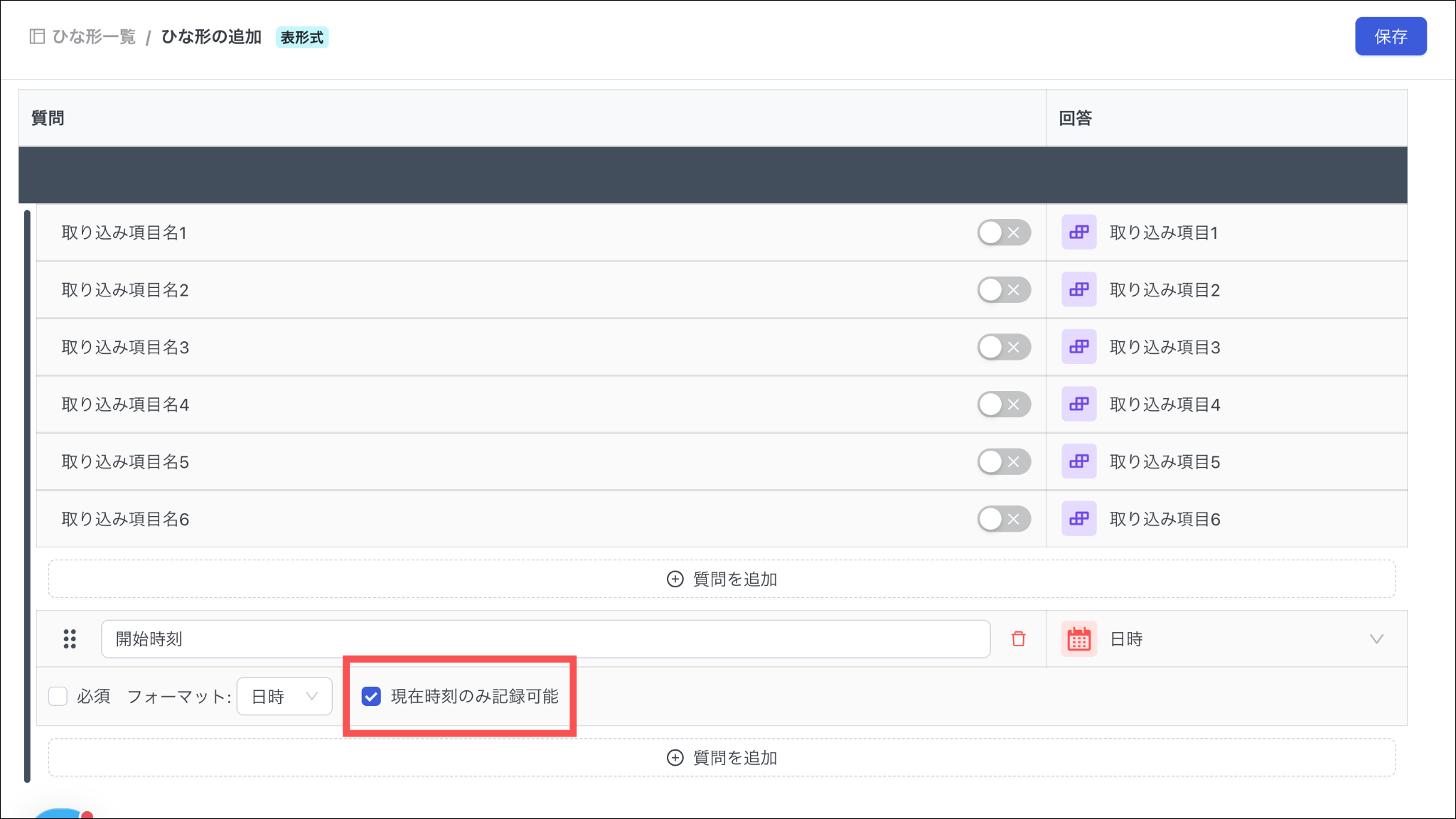 「現在時刻のみ記録可能」にチェックを入れると現在時刻のみ記録可能となるため、時間改ざんなどの不正な記録を防止することができます。