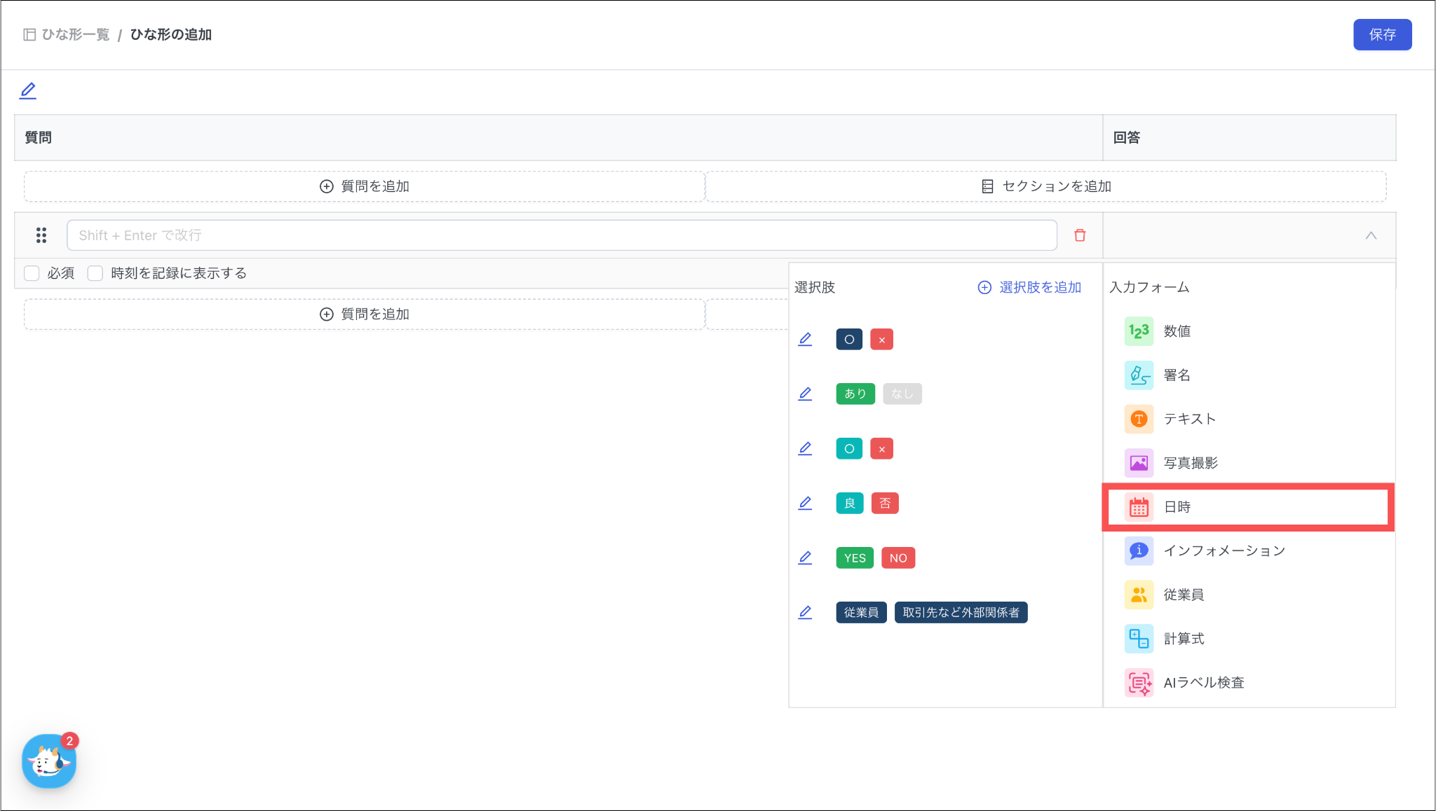 ※「日時」「時刻」を選択した場合のみ選択可能です