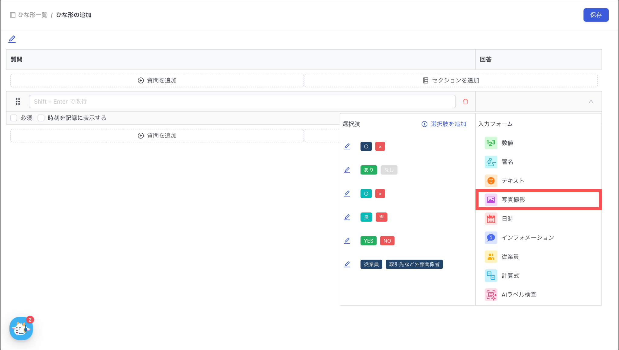 「写真撮影」を押すと回答方法を写真撮影に設定できます。