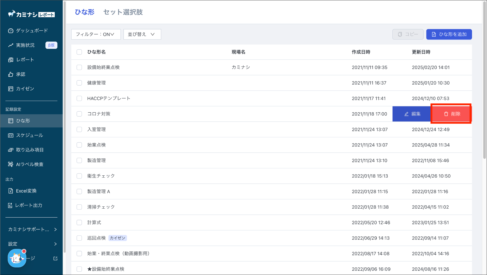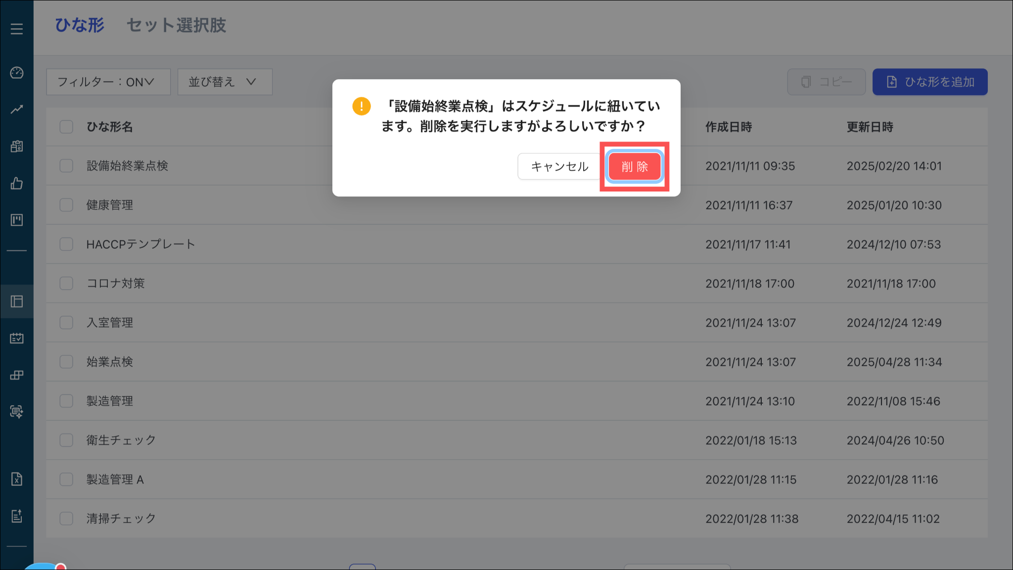 ひな形を削除する