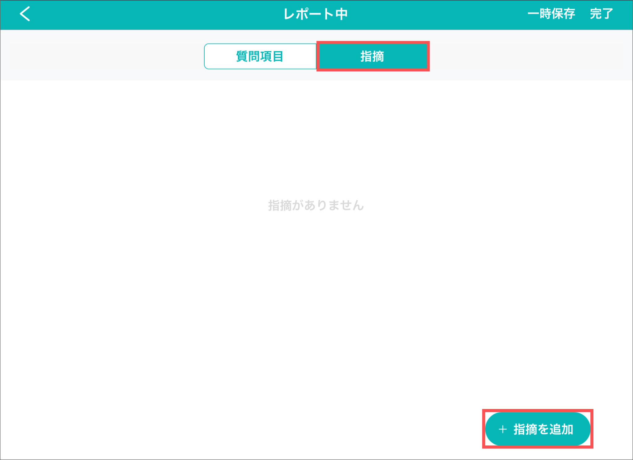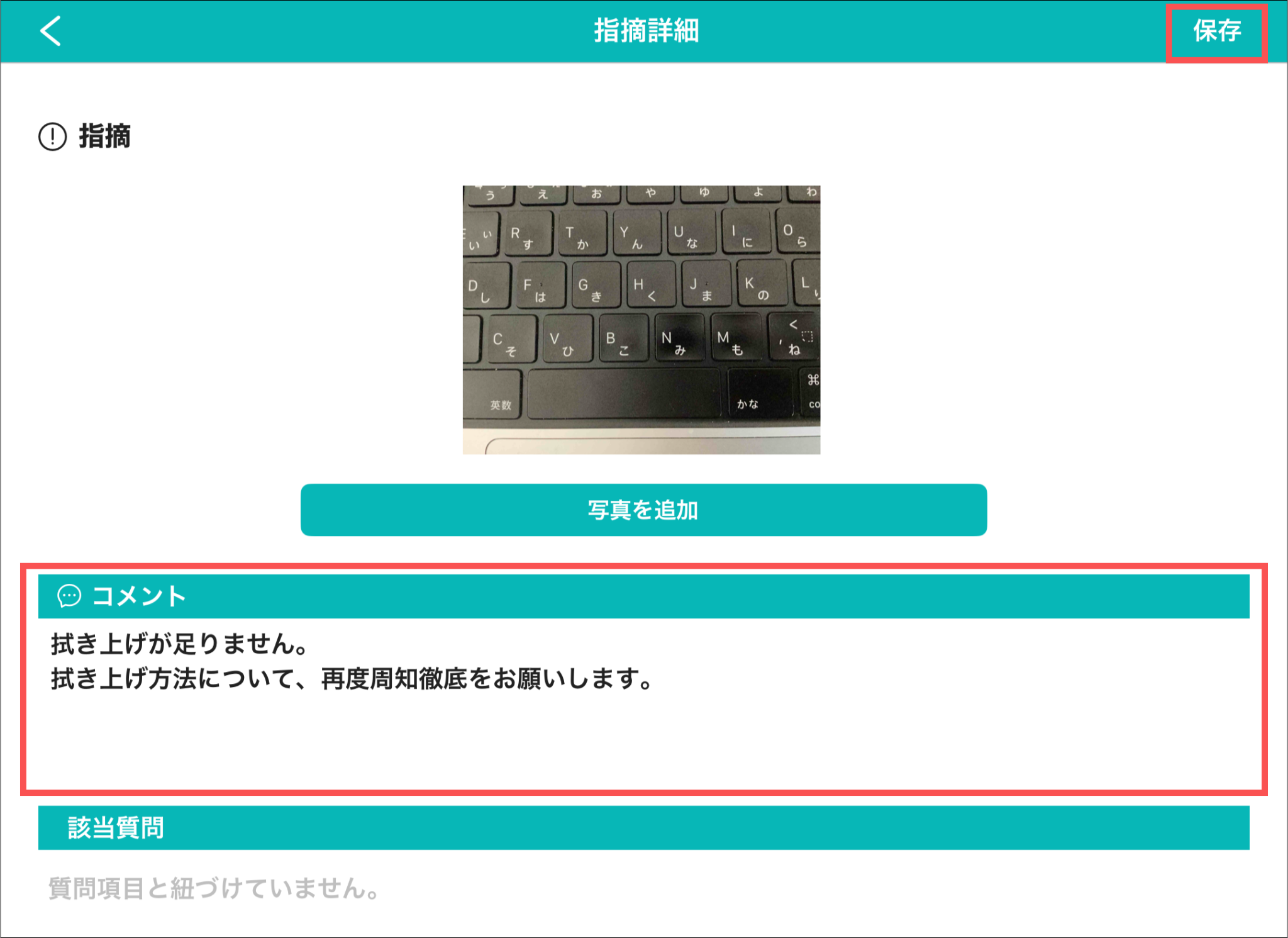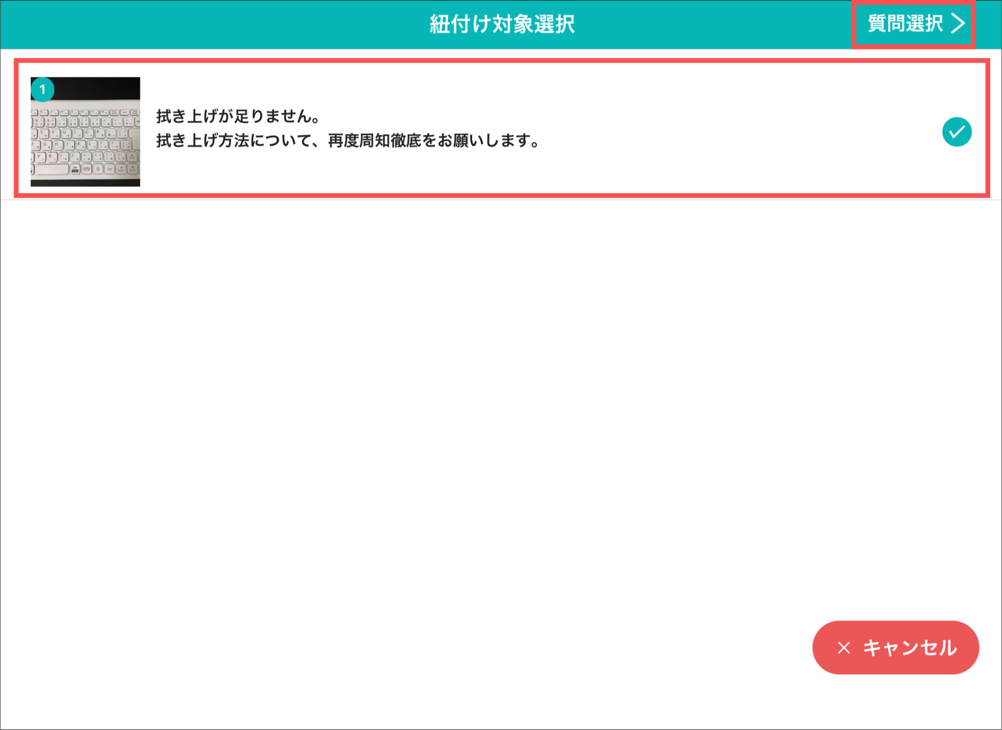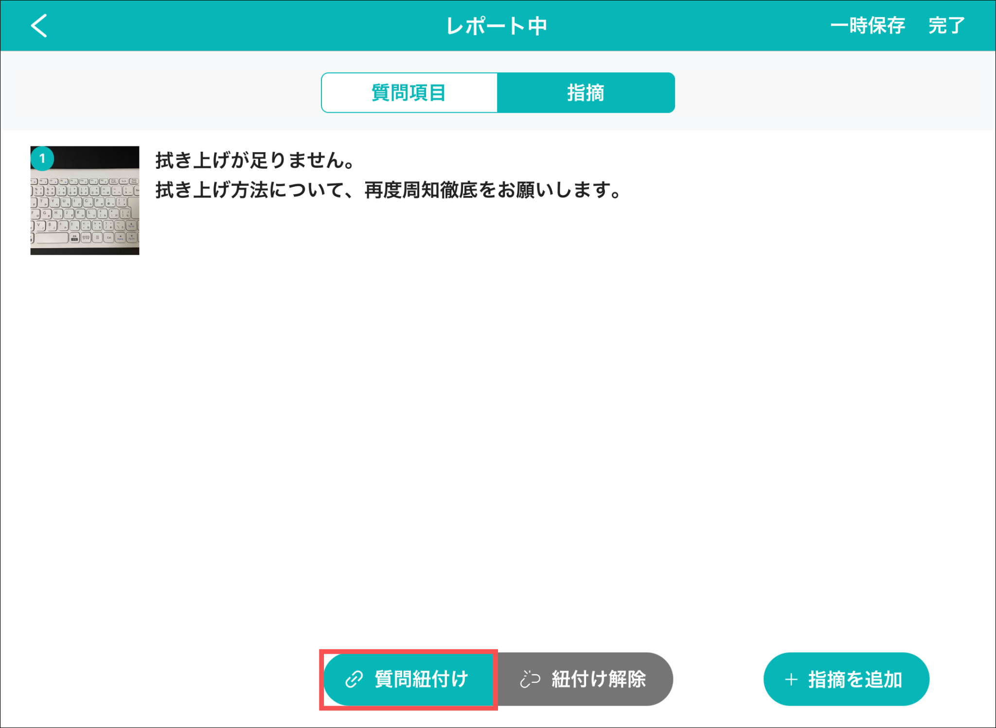 指摘内容の下に紐付けた質問が表示されます。