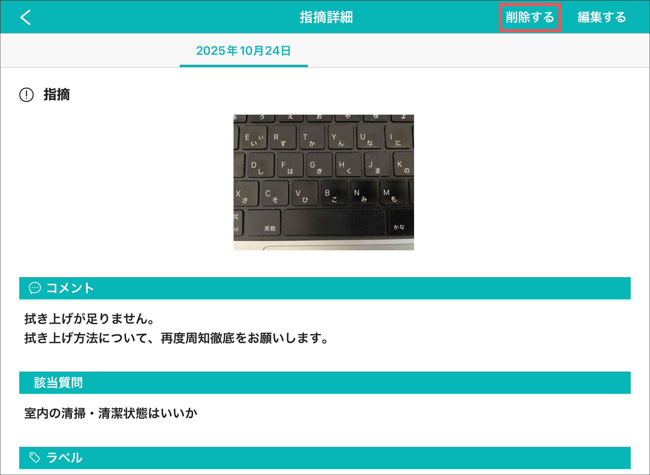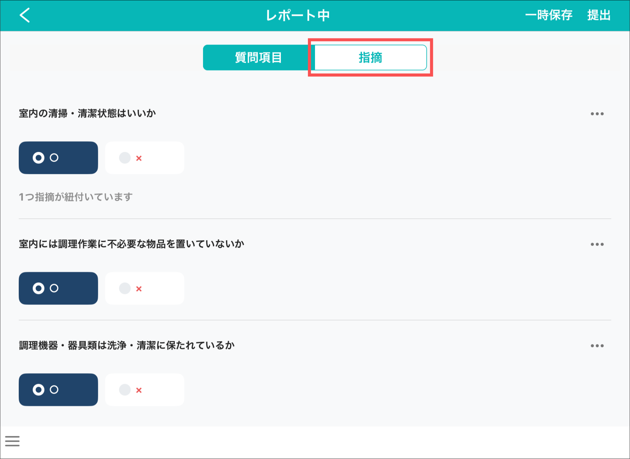 1.カミナシレポート 記録アプリ(iOS/iPadOS)にログインする2.カイゼンの記録を再開するカイゼンの記録再開の手順は「記録アプリ(iOS/iPadOS)にて、記録中のレポートを再開する」をご参照ください。3.「指摘」を押す4.削除する画像を押す5.「削除する」を押す6.「一時保存」または「完了」を押すよくある質問は、こちらからご確認ください。