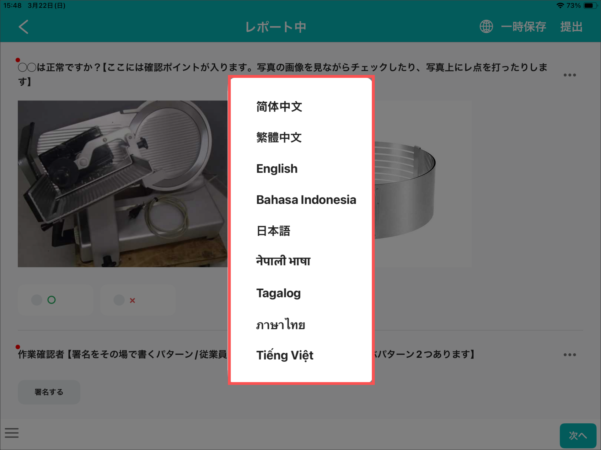 レポートの新規作成方法については、「記録アプリ(iOS/iPadOS)にて、レポートを新規作成する」をご参照ください。