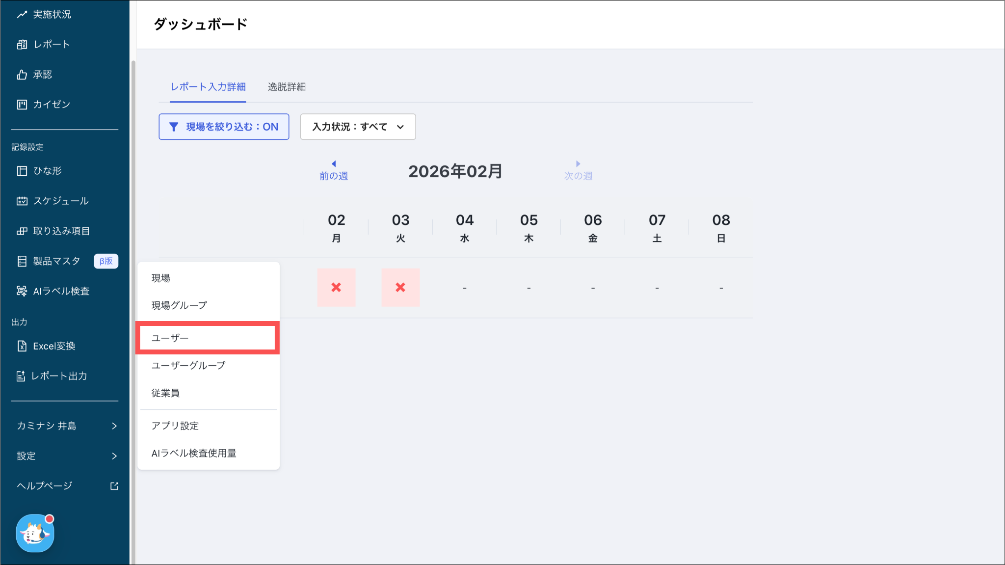 選択する現場が表示されない場合は、現場設定より現場登録を行ってください。