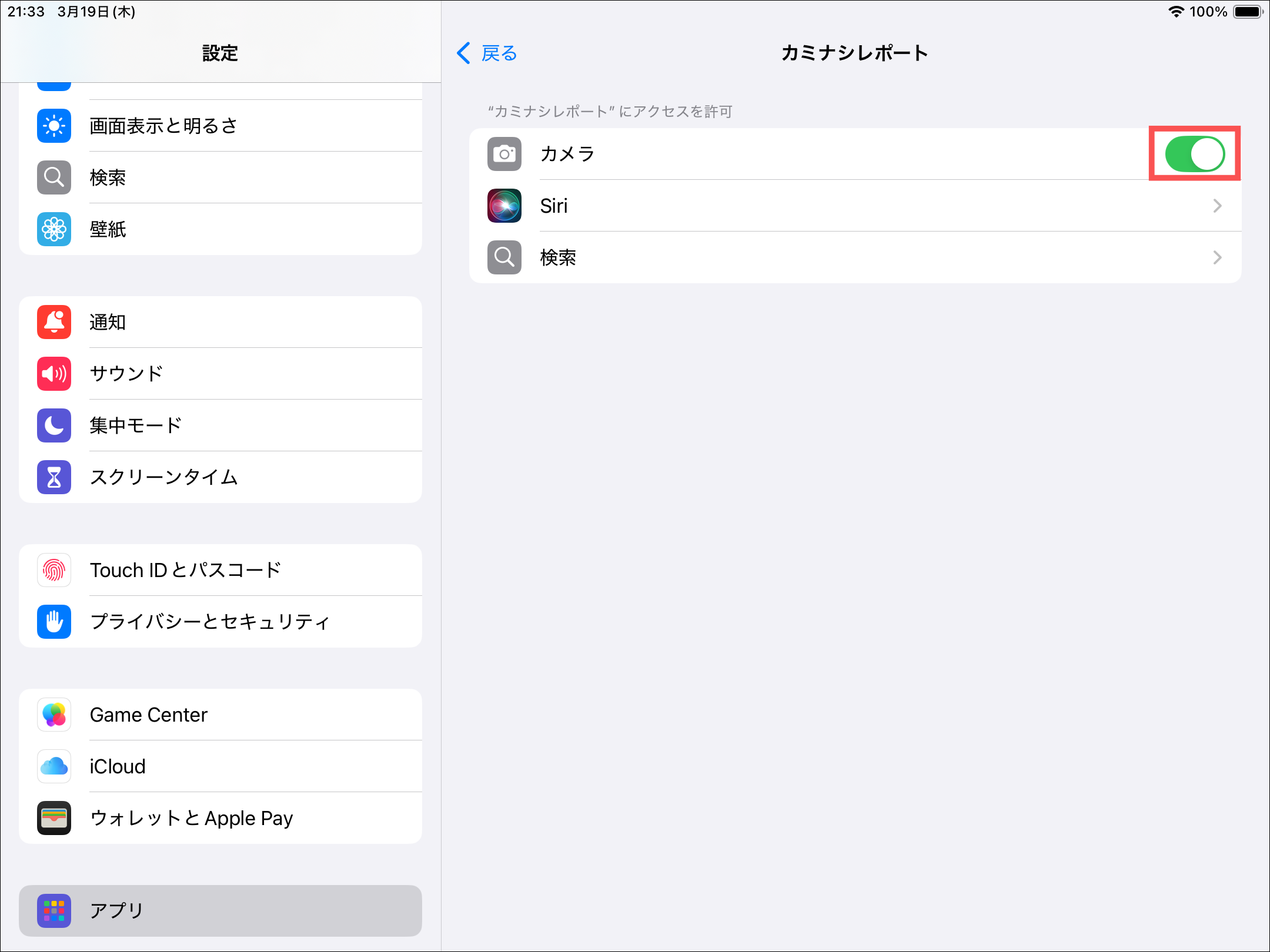 記録アプリ(iOS/iPadOS)でアクセス許可のポップアップが出ない場合、端末内にある設定アプリからアクセス許可をします。