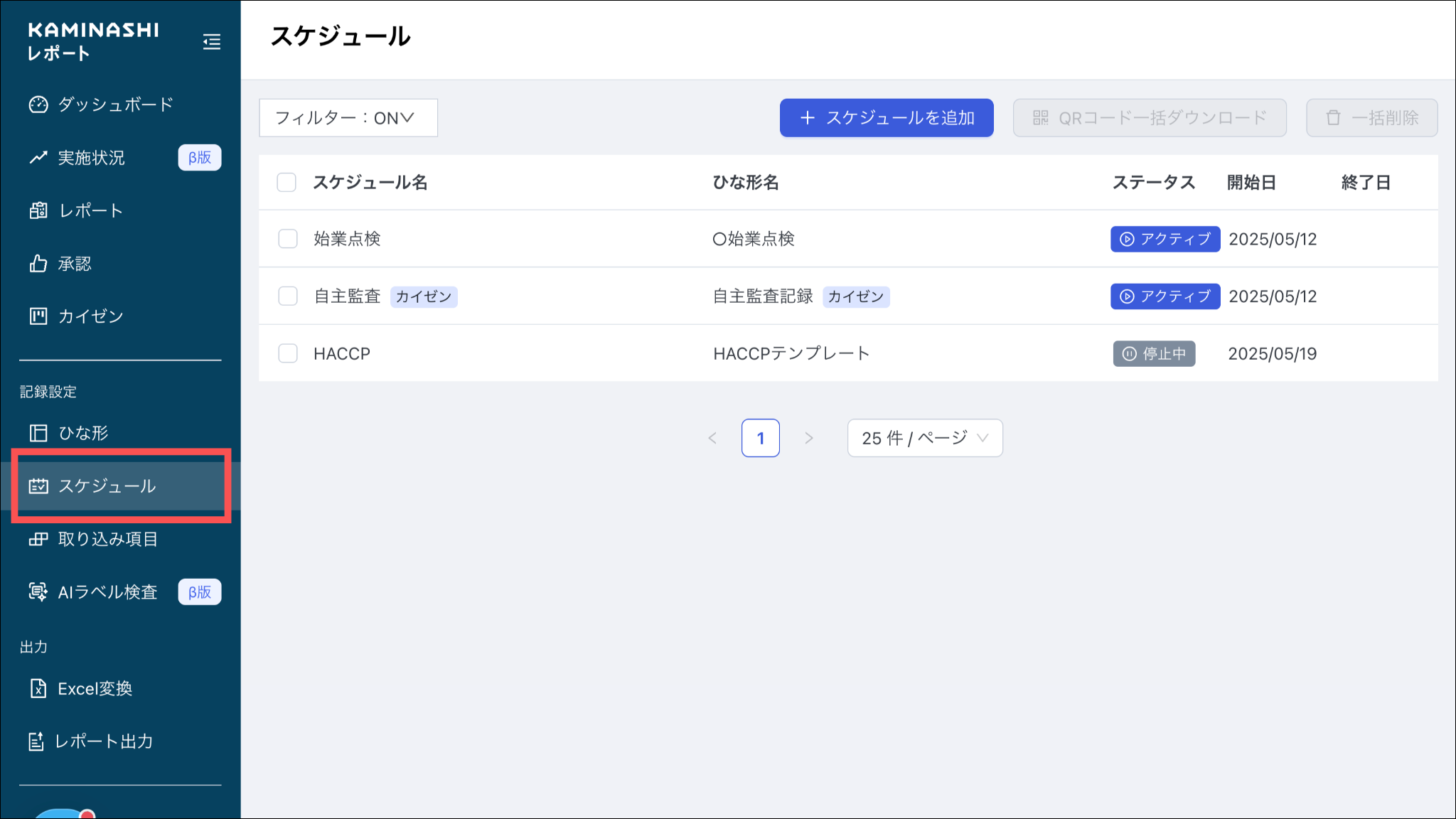 ※スケジュールが紐づいていないひな形の場合は、QRコードをご利用いただけません