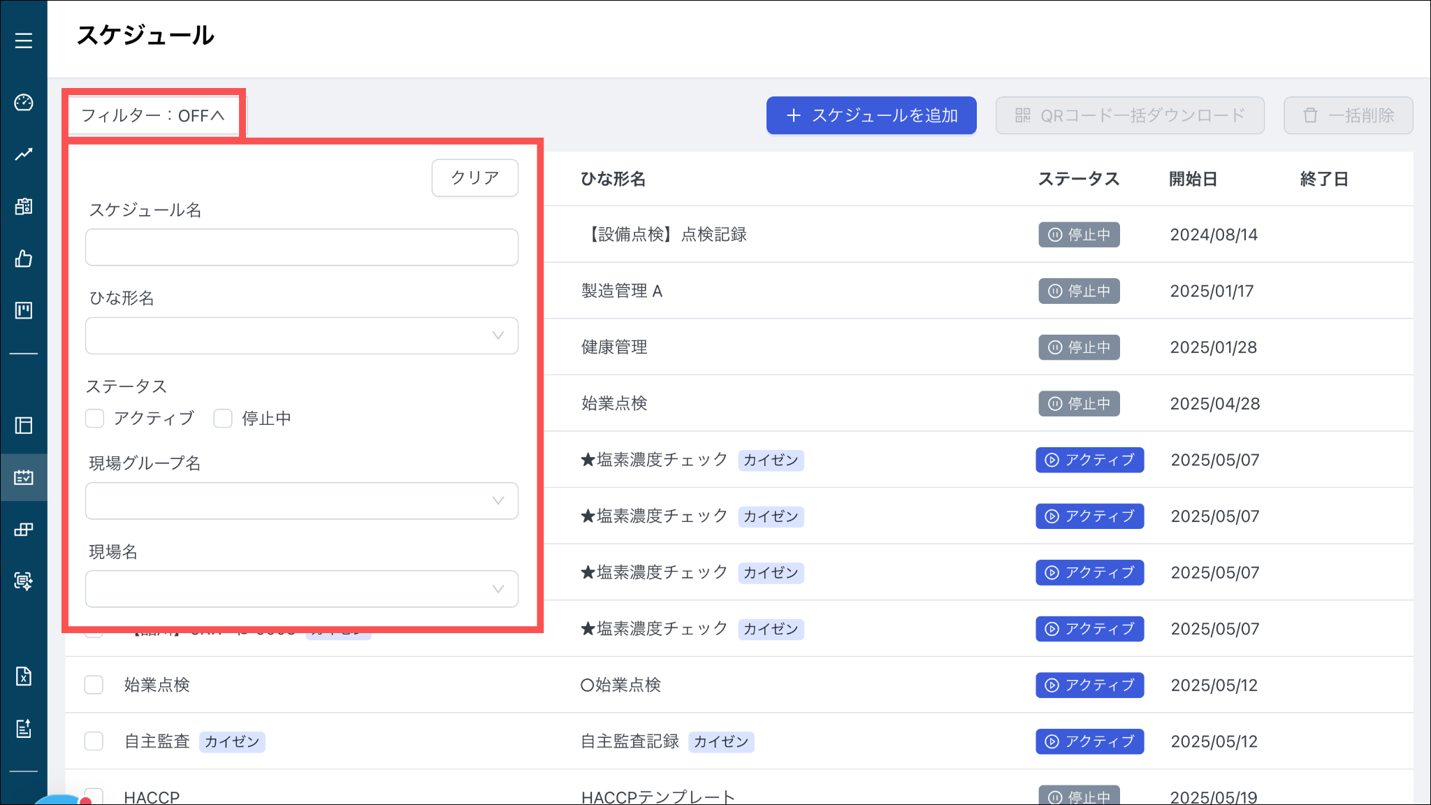 ひな形名:スケジュールに紐付けたひな形名を指定