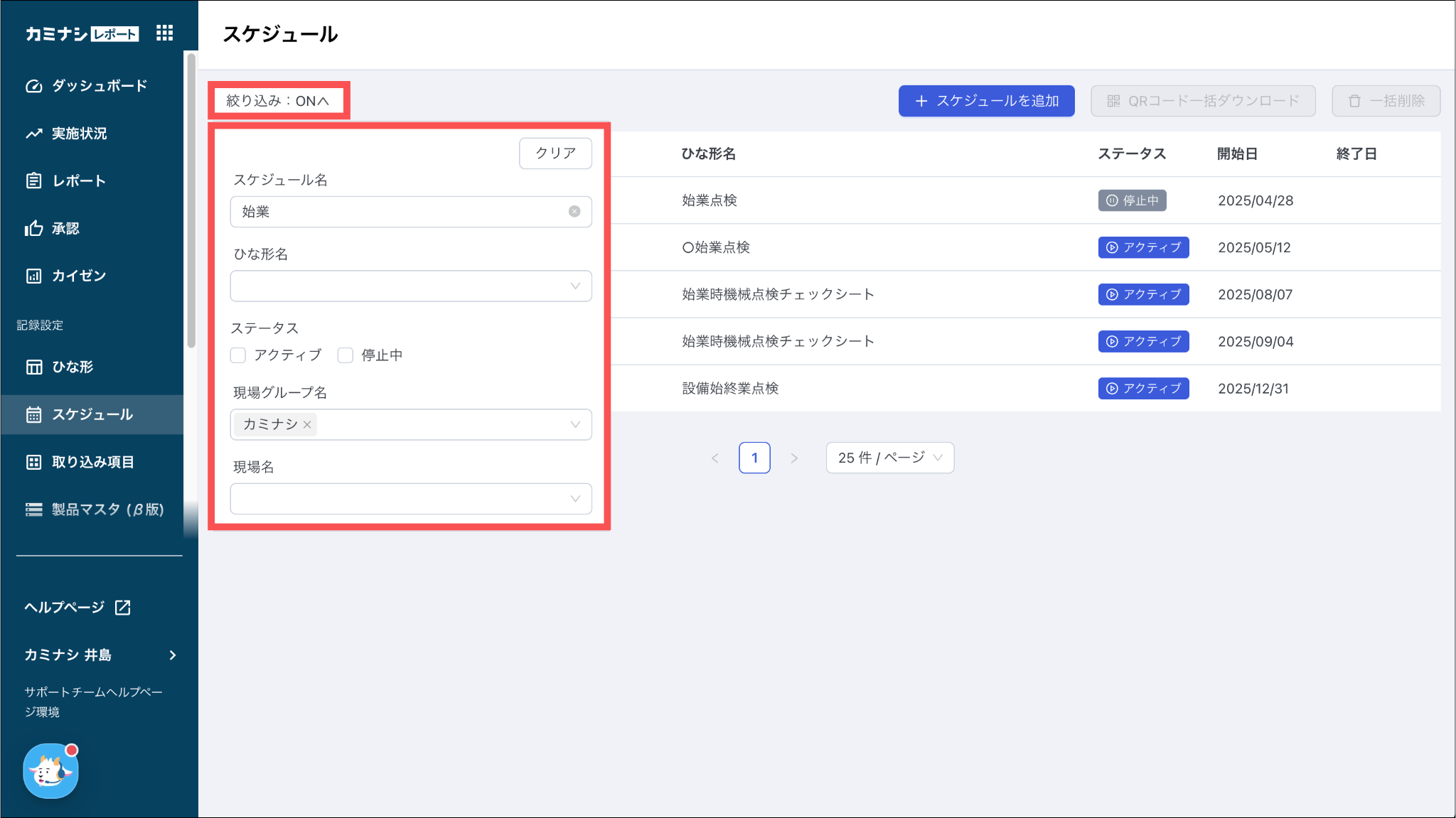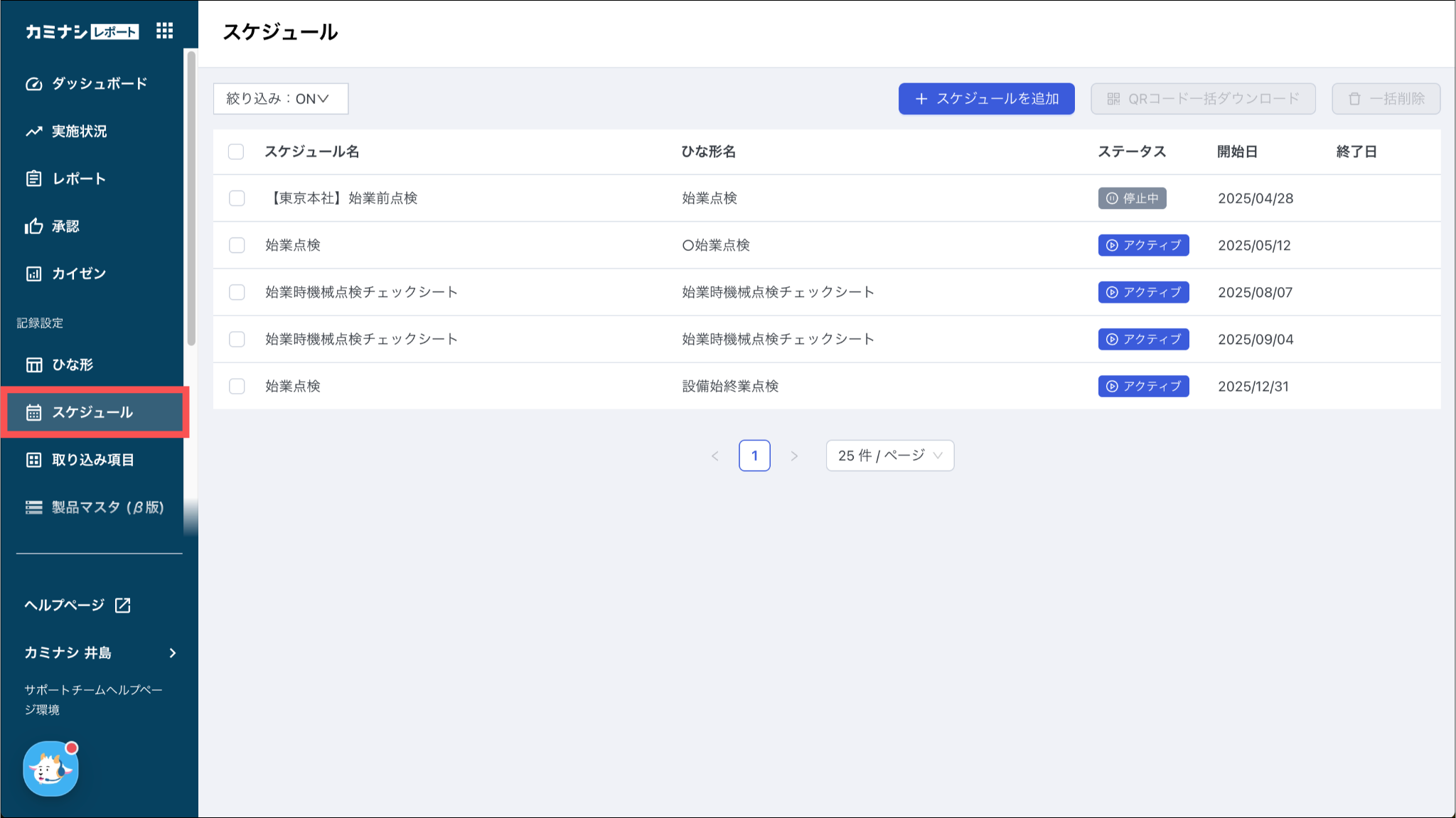ひな形名:スケジュールに紐付けたひな形名を指定します。