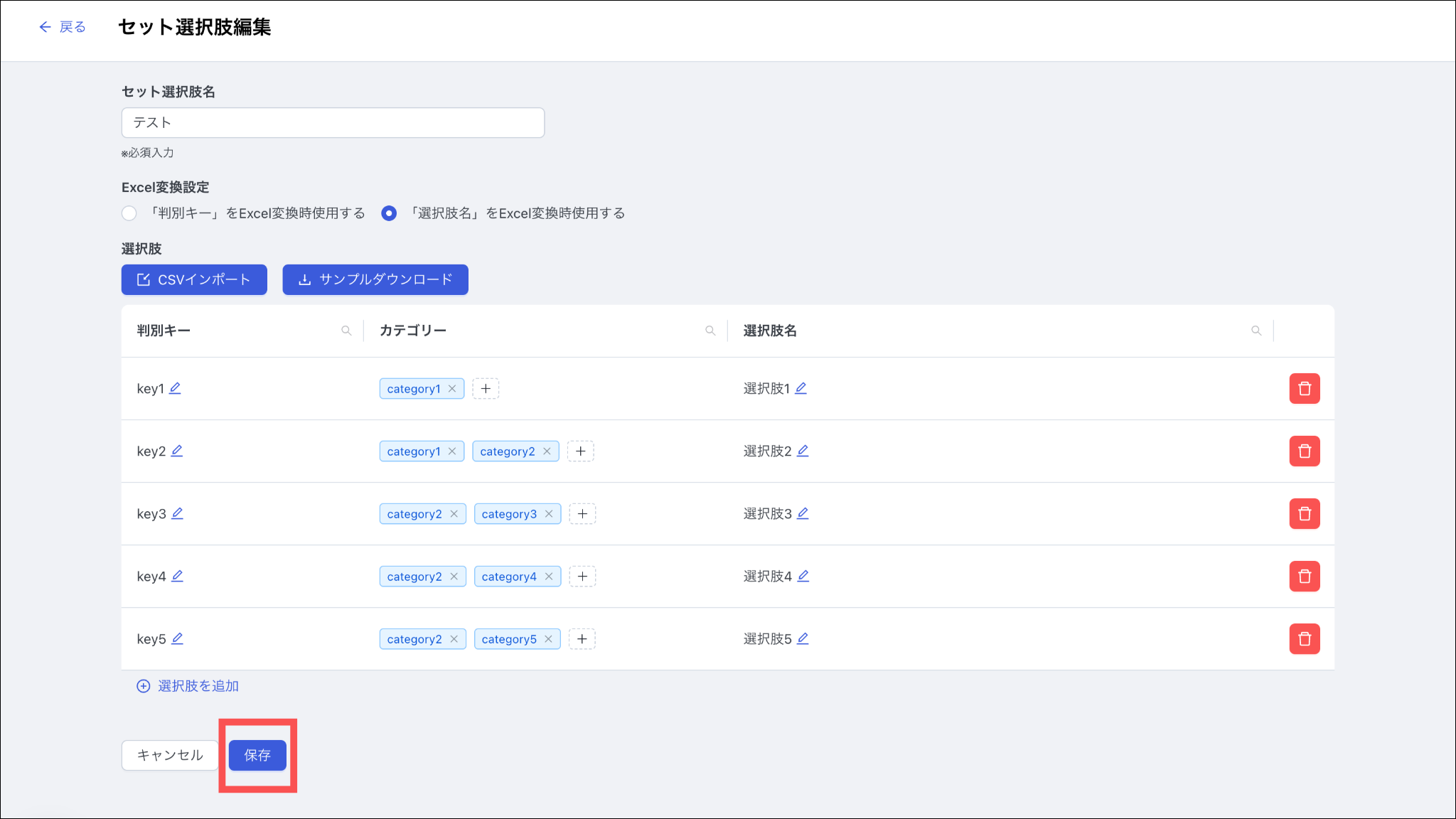 設定方法の詳細は「セット選択肢を個別に登録する:7.回答形式にセット選択肢を設定する」をご参照ください。