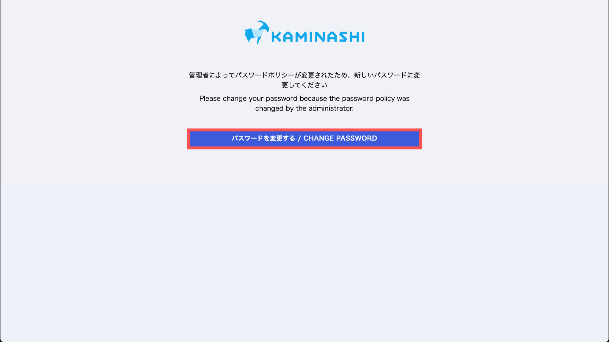 新しいパスワードポリシーに準拠していないユーザーのみ、次回ログイン時にパスワード変更をする必要があります。