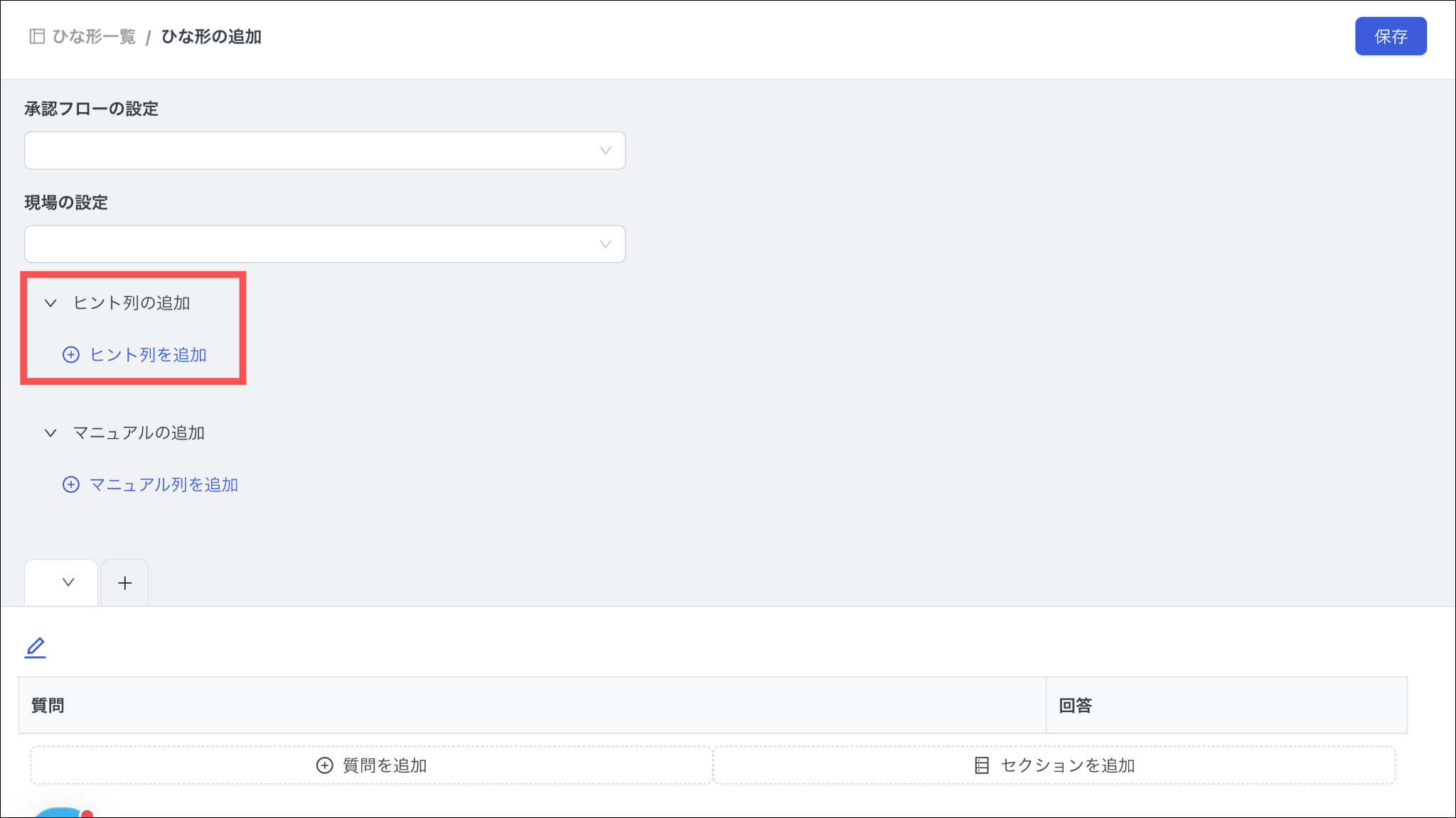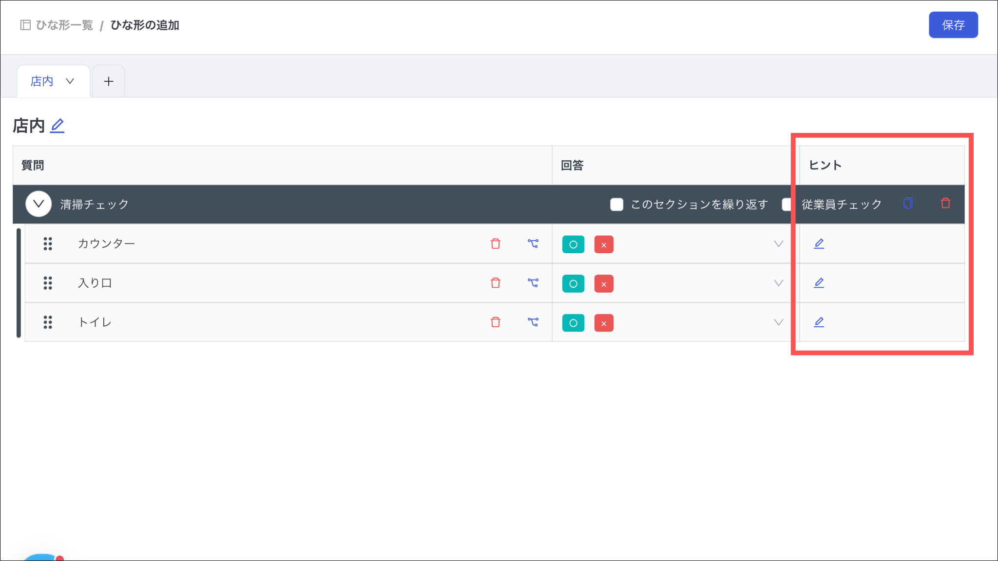 ヒント名を入力すると回答の右側にヒント列が追加されます。