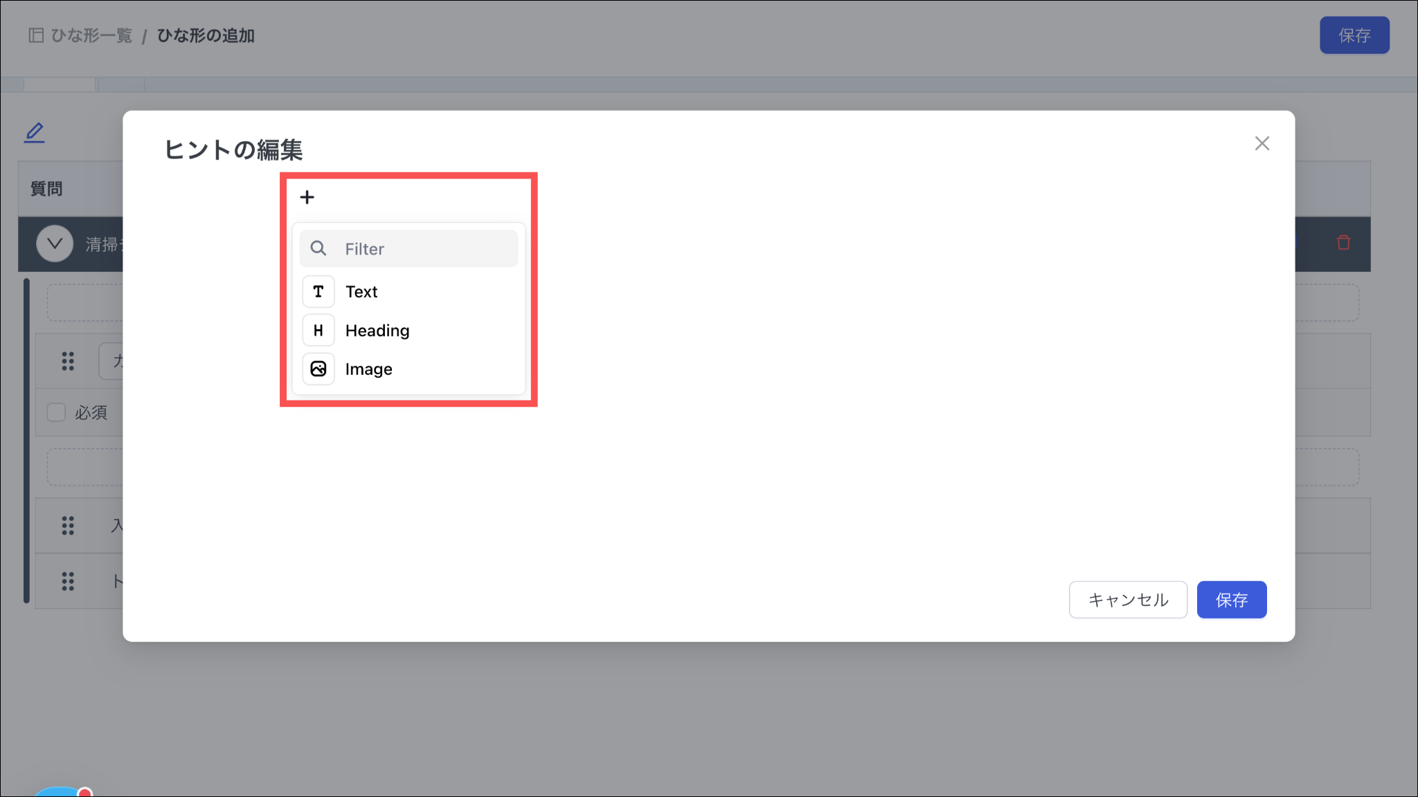 ヒントに挿入できる画像はJPEGやPNGなどで、動画やPDFは挿入できません。