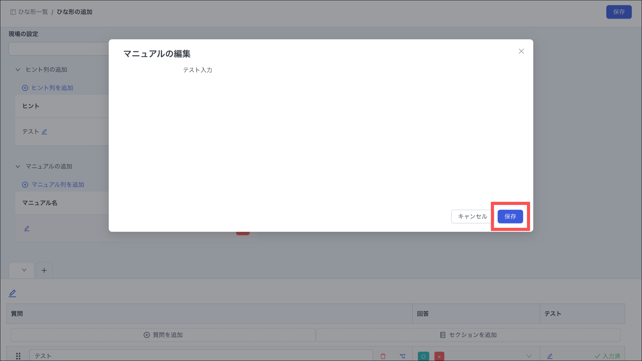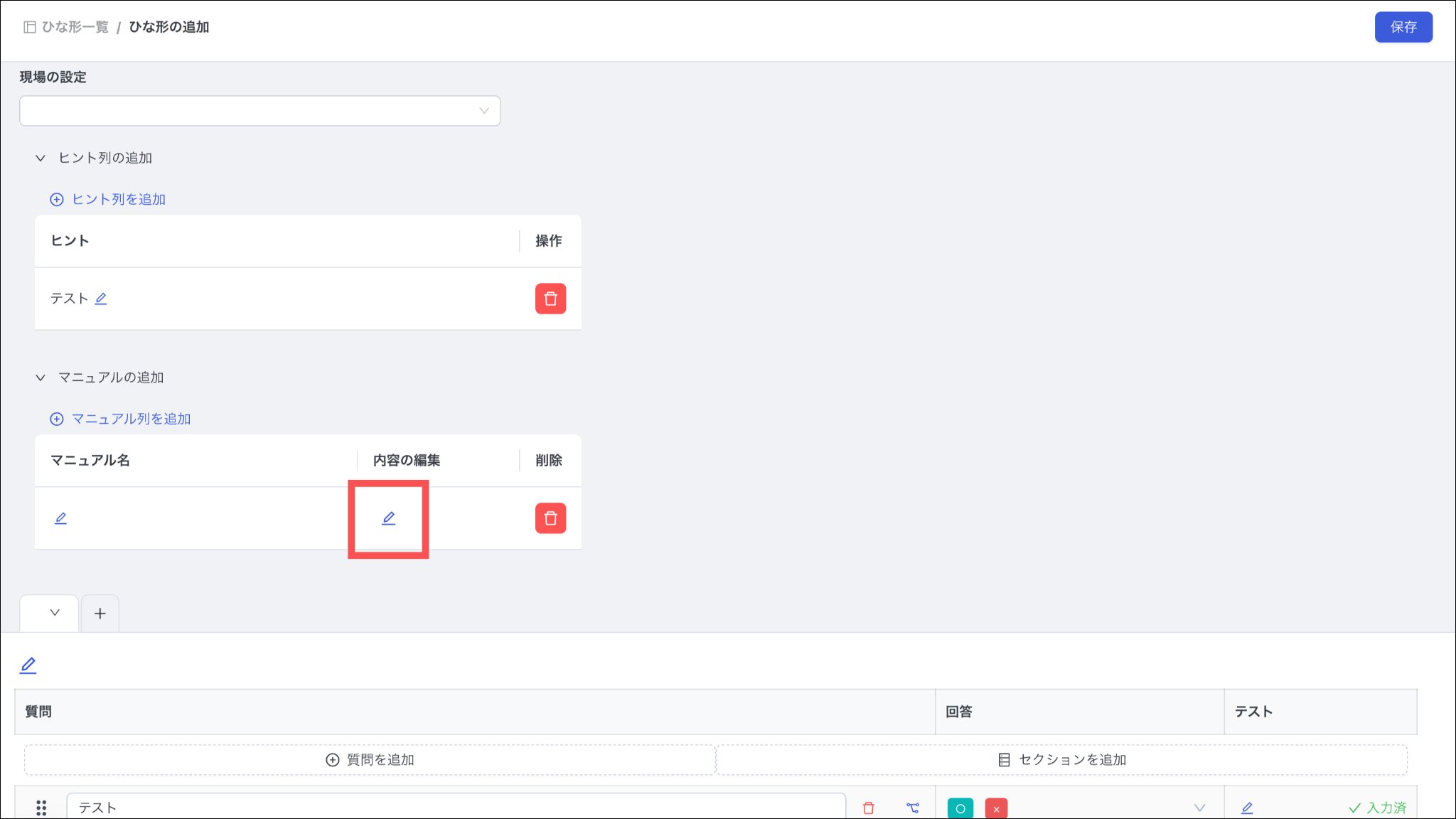 ヒントやマニュアルに入力した内容は、保存後に編集することができます。
