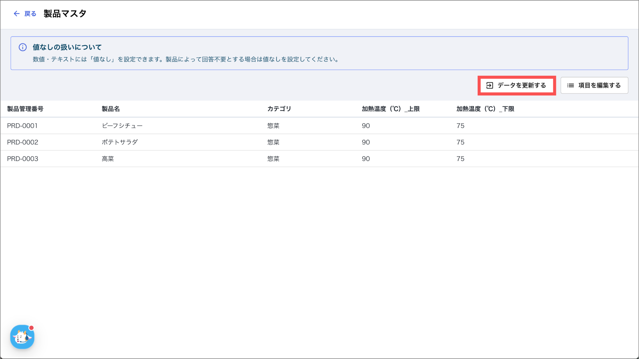 どの製品かを判定する基準には、1列目の「製品管理番号」が使用されます。