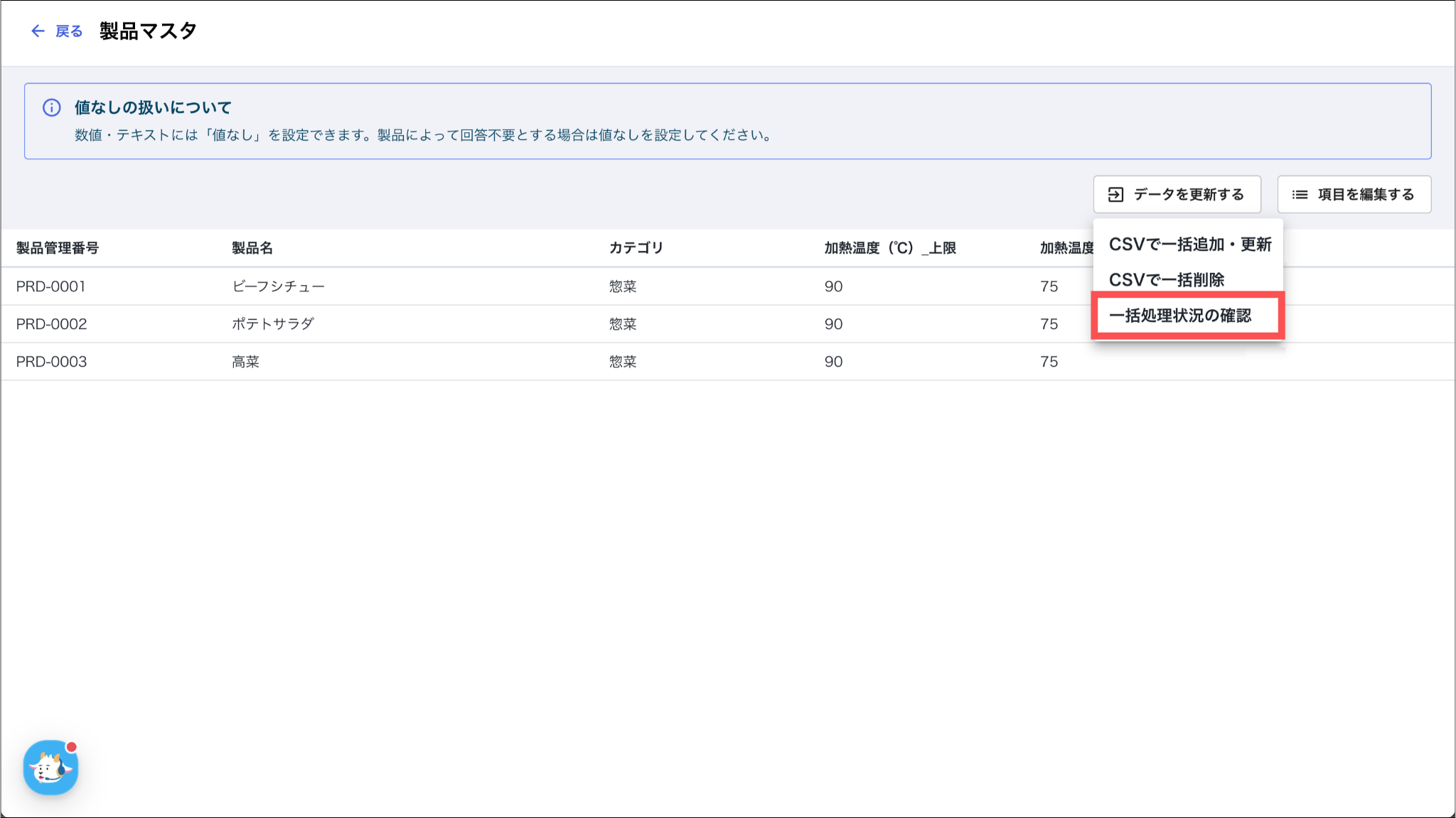 また、処理中は登録ステータスが「進行中」と表示され、処理が完了すると「成功」と表示されます。