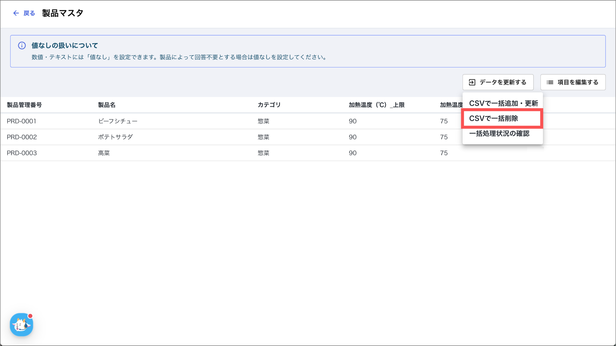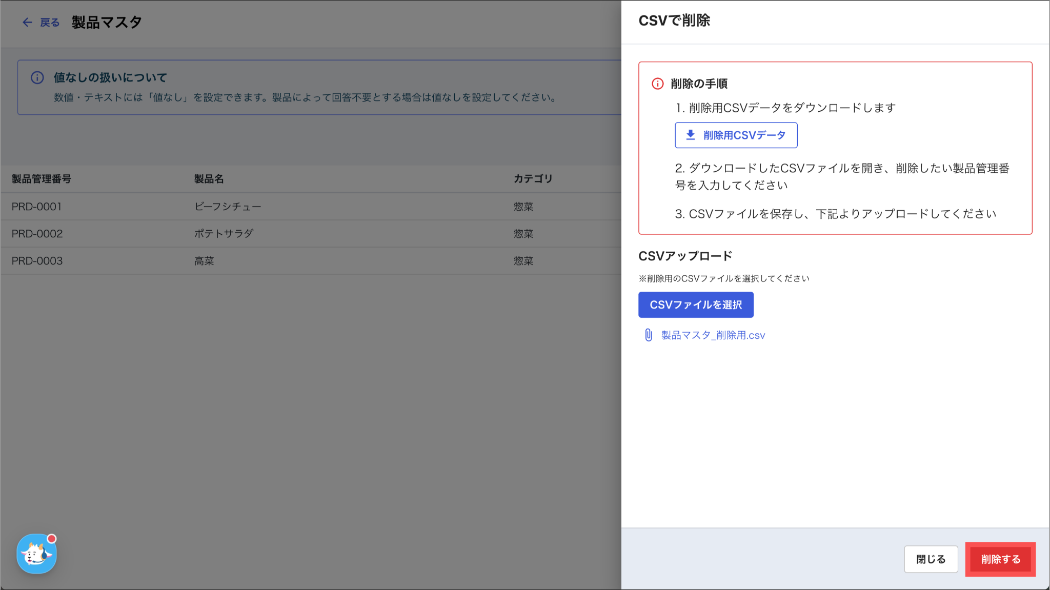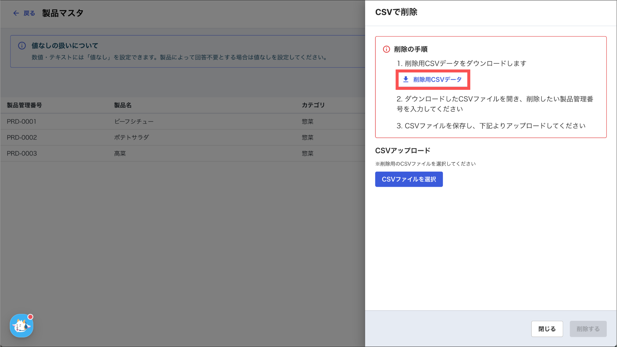 削除する製品の「製品管理番号」を入力してください。