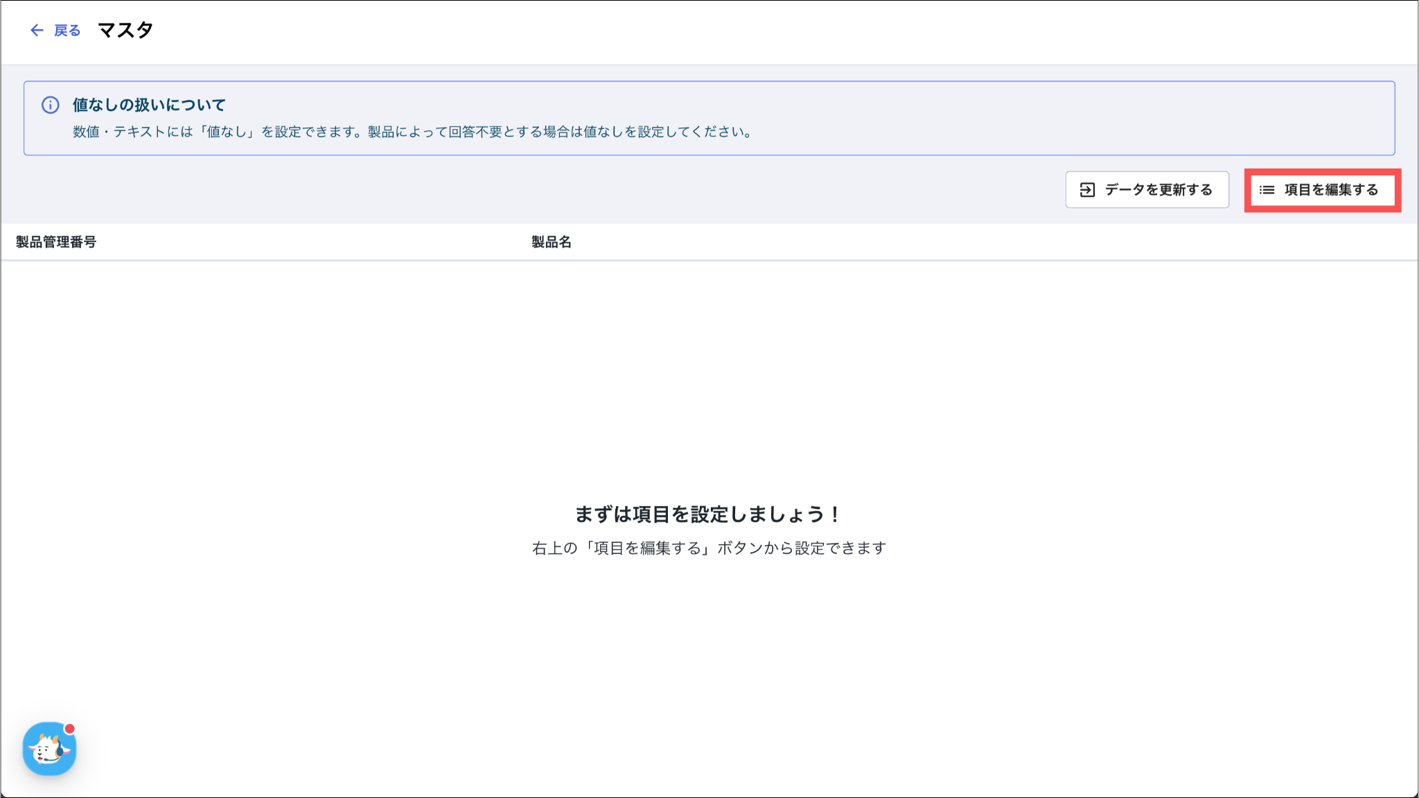 製品名や製品管理番号、カテゴリなどの情報を管理する場合に選択します。